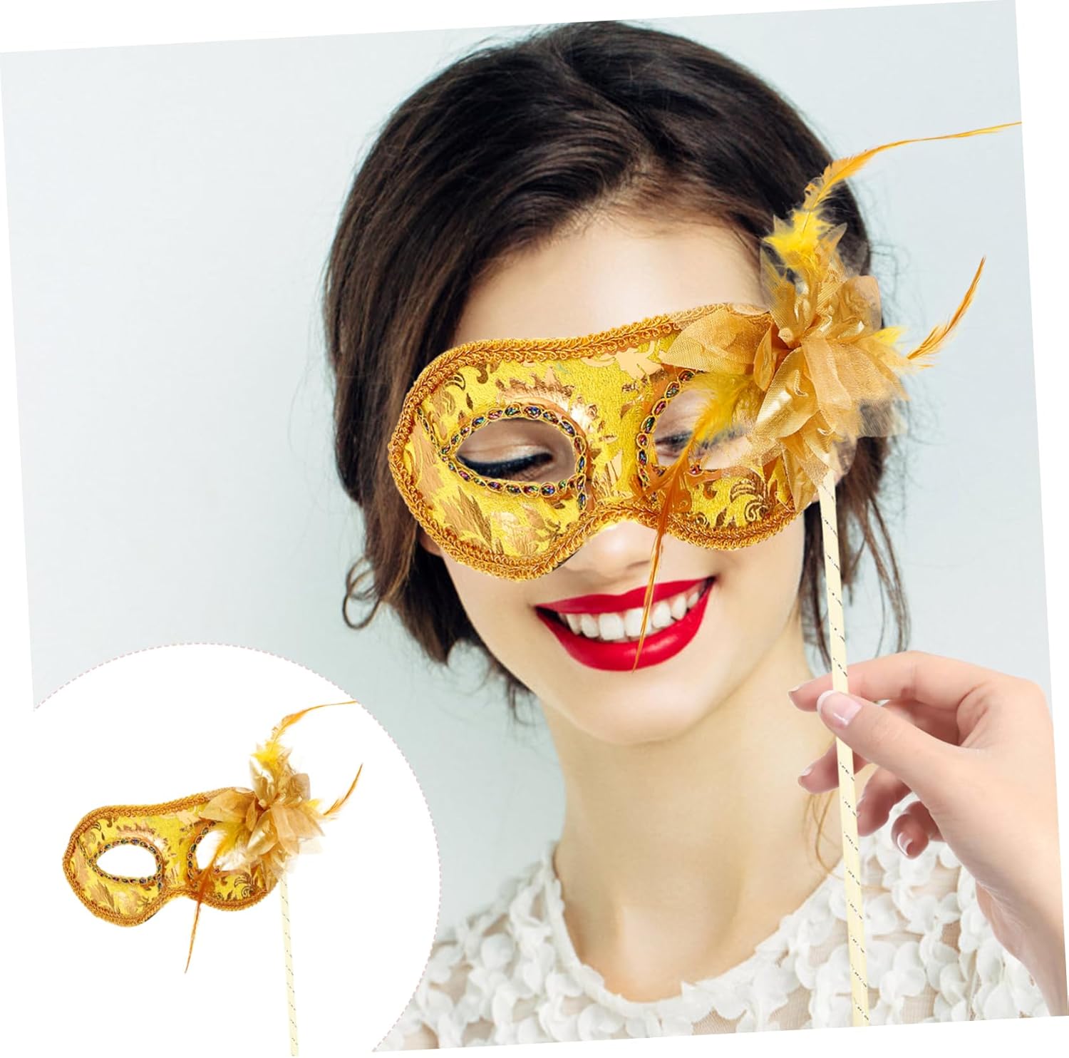 2Pcs Holding Half Face Mask Masquerade Mask Party Masks For Adults Face Masks Clothes Handheld Mask Prop Handheld Mask For Women Prom Side Flower Stick