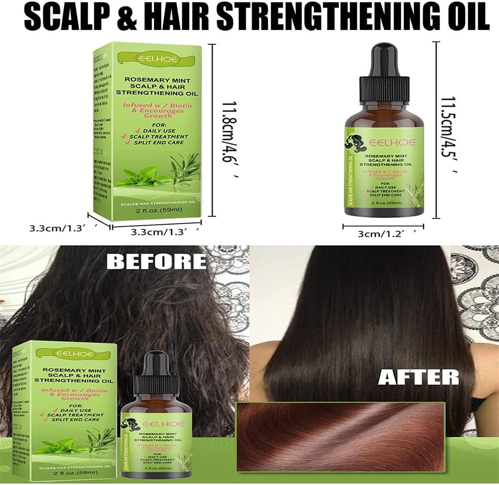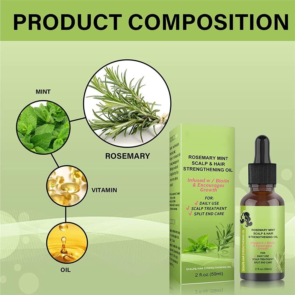 2Pcs Rosemary Essential Oil,Rosemary Mint Scalp & Hair Strengthening Oil,Rosemary Mint Oil for Dry Damaged Hair and Growth for Men Women(59ml)