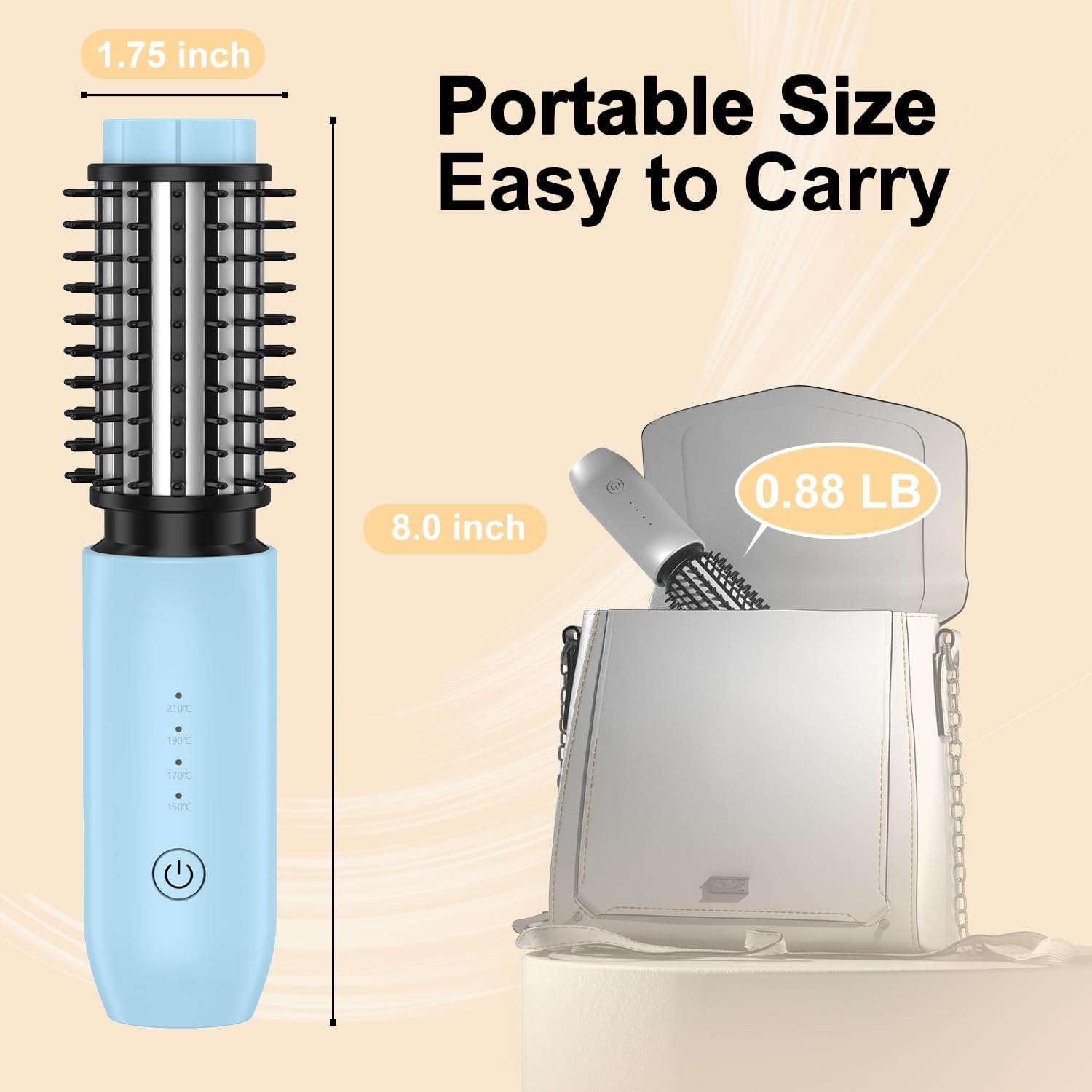 3-in-1 ontwerp: de draadloze hete borstel kan worden gebruikt als krultang en stijlborstel. De verwarmende krulborstel helpt het haar glad te maken, zijdeachtig te maken en te krullen. Het glijdt over het haar zonder het in de war te raken en is geschikt voor een groot aantal kapsels.