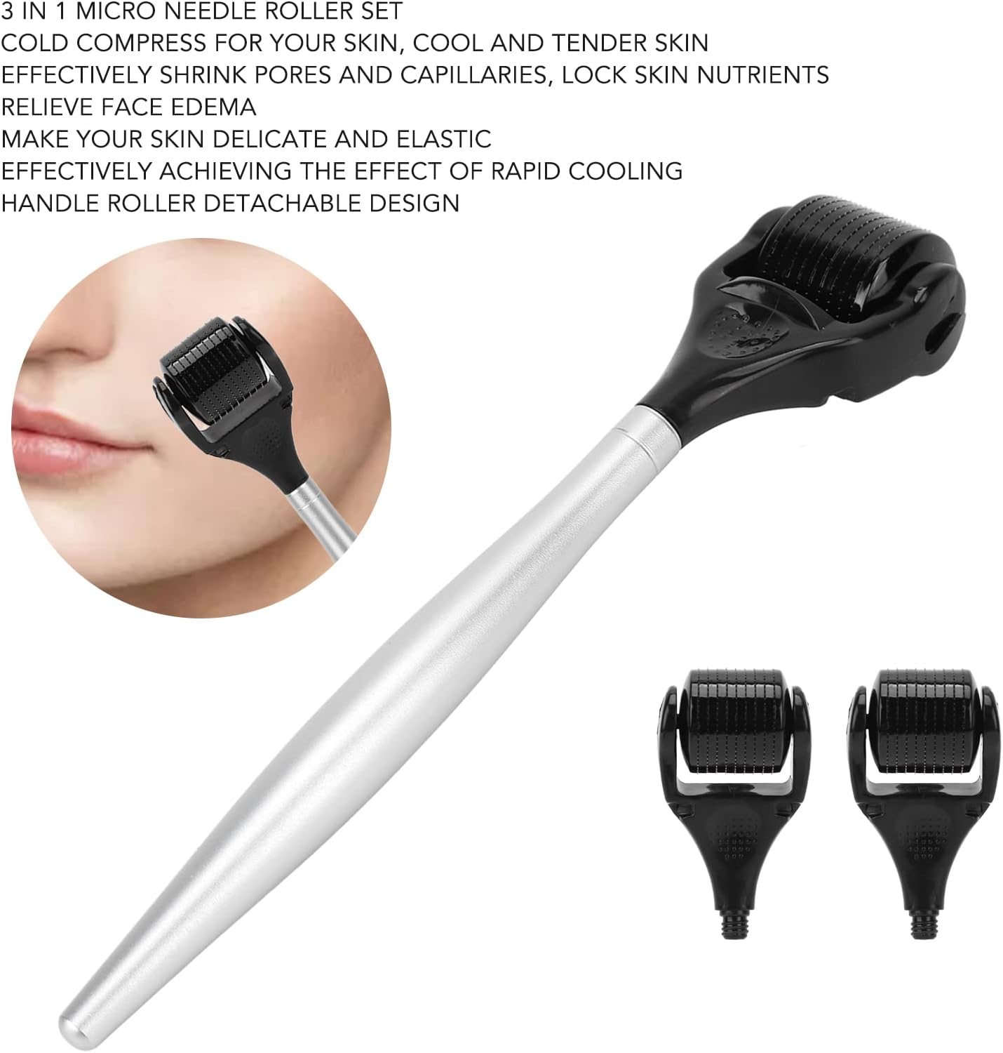 DETACHABLE Microneedling-gezichtsrol aangenomen afneembaar ontwerp, uitgerust met 2 vervangende rolhoofden voor u om te gebruiken, en handvat kan hergebruik zijn.