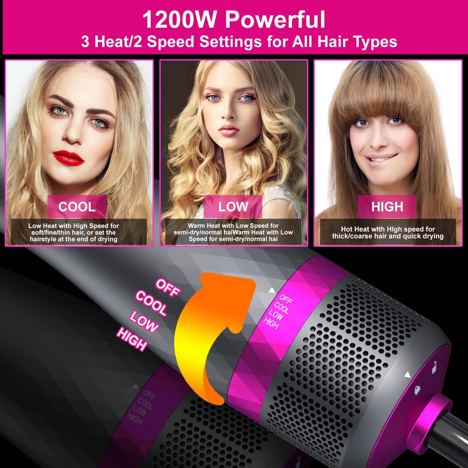 2024 nieuwe update van de hetelucht-droogborstel: de hetelucht-borsteldroger voor vrouwen wordt geleverd met 4 verwisselbare borstelopzetstukken, die het föhnen, gladmaken, krullen, volume geven en hoofdhuidmasseren kinderspel maken. In combinatie met een stijlvolle haardrogerborstel is deze föhnborstel perfect geschikt voor het creëren van verschillende kapsels voor verschillende haarlengtes. Dankzij de prachtige verpakking kun je het ook gebruiken als cadeau voor vrienden, familie of andere mensen waar je van houdt.