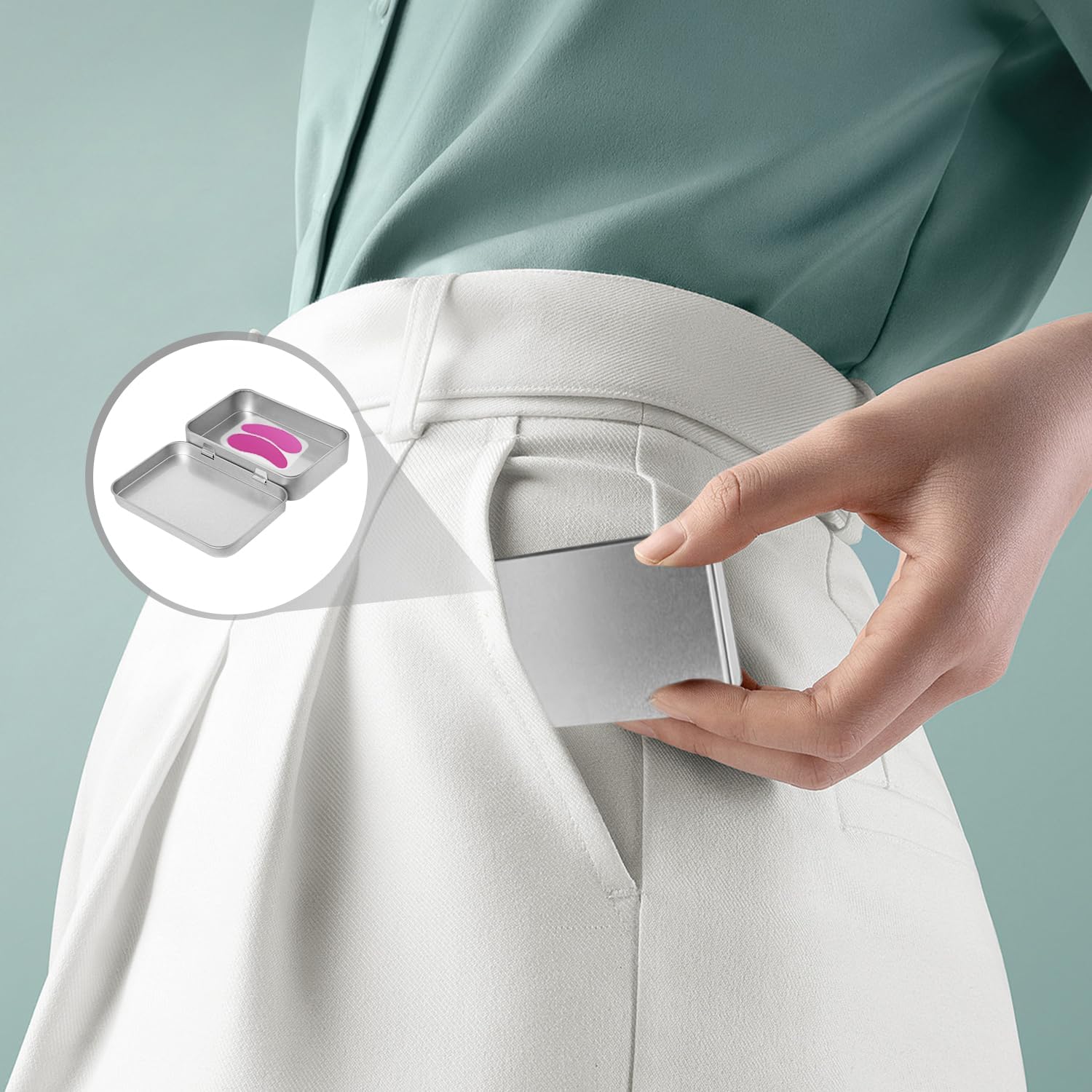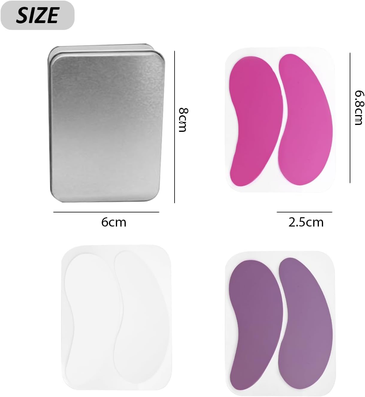 Inhoud van de levering: je ontvangt 3 paar siliconen oogpads met een grootte van ca. 6,8 x 2,5 cm, elk 1 paar in rozerood, paars en wit, om aan je dagelijkse huidverzorgingsbehoeften te voldoen. Wordt geleverd met 1 zilveren, rechthoekige metalen opbergdoos met de afmetingen 8,8 x 6,0 x 1,8 cm, die praktisch is voor je opslag.
