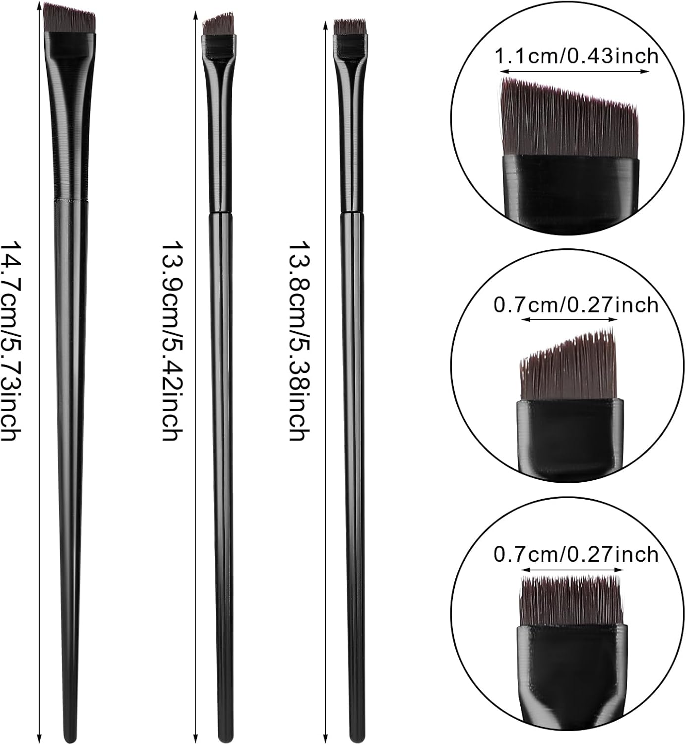 3 Stks Eyeliner Borstel Wenkbrauw Borstel Set, Fijne Hoekige Wenkbrauw Borstel Precisie Ultra Dunne Make-up Borstels, Wreedheid Gratis Synthetische Haren Oogschaduw Borstel Cosmetische Tool