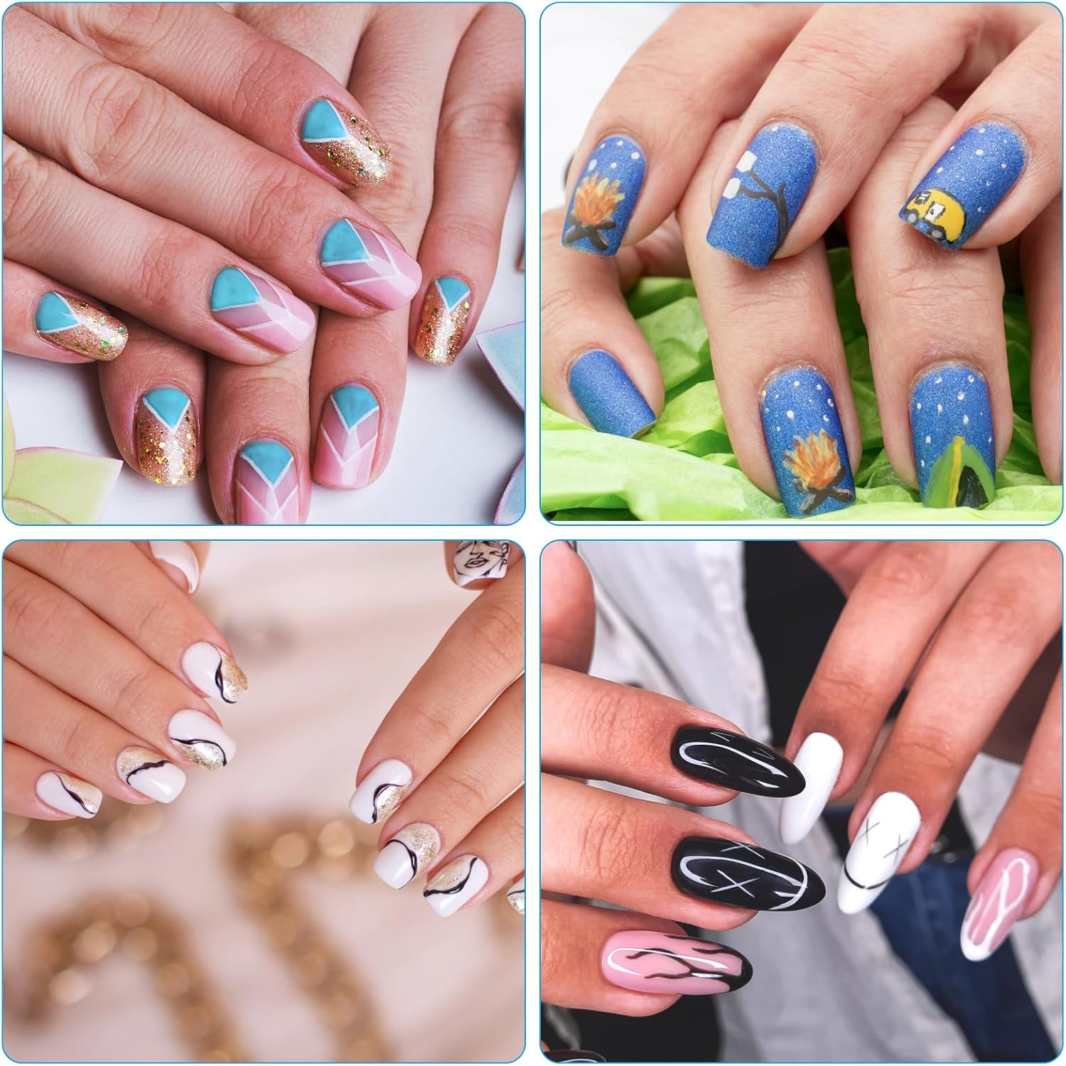 Stijlvol en veelzijdig: met drie verschillende penmaten beschikbaar, kunt u moeiteloos lijnen, tekens en delicate patronen van verschillende breedtes tekenen. Met deze veelzijdige maten kun je je creativiteit ontketenen en unieke nagelkunststijlen ontwerpen, waardoor je nagels een onderscheidend tintje krijgen.