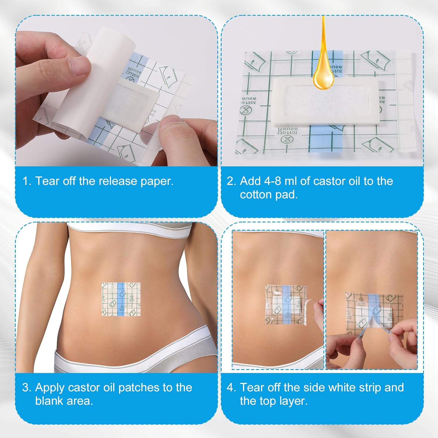 Pakket inbegrepen: u ontvangt 30 stukken ricinusoliepakket wrap voor de navel.Voldoende hoeveelheid om aan uw gebruik en vervangingen te voldoen.