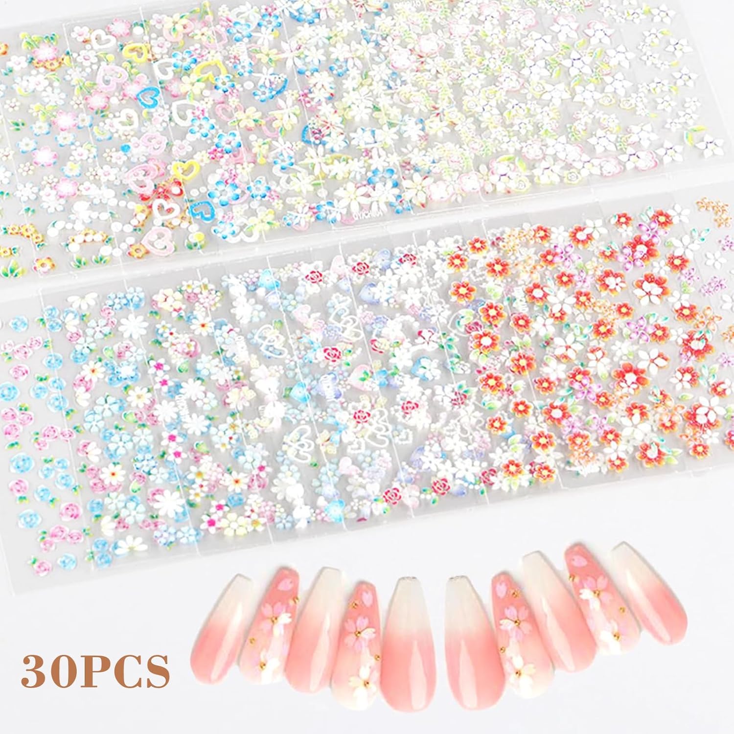 30 vellen bloemennagelstickers, 3D, zelfklevend, voor nail art, accessoires om zelf te maken