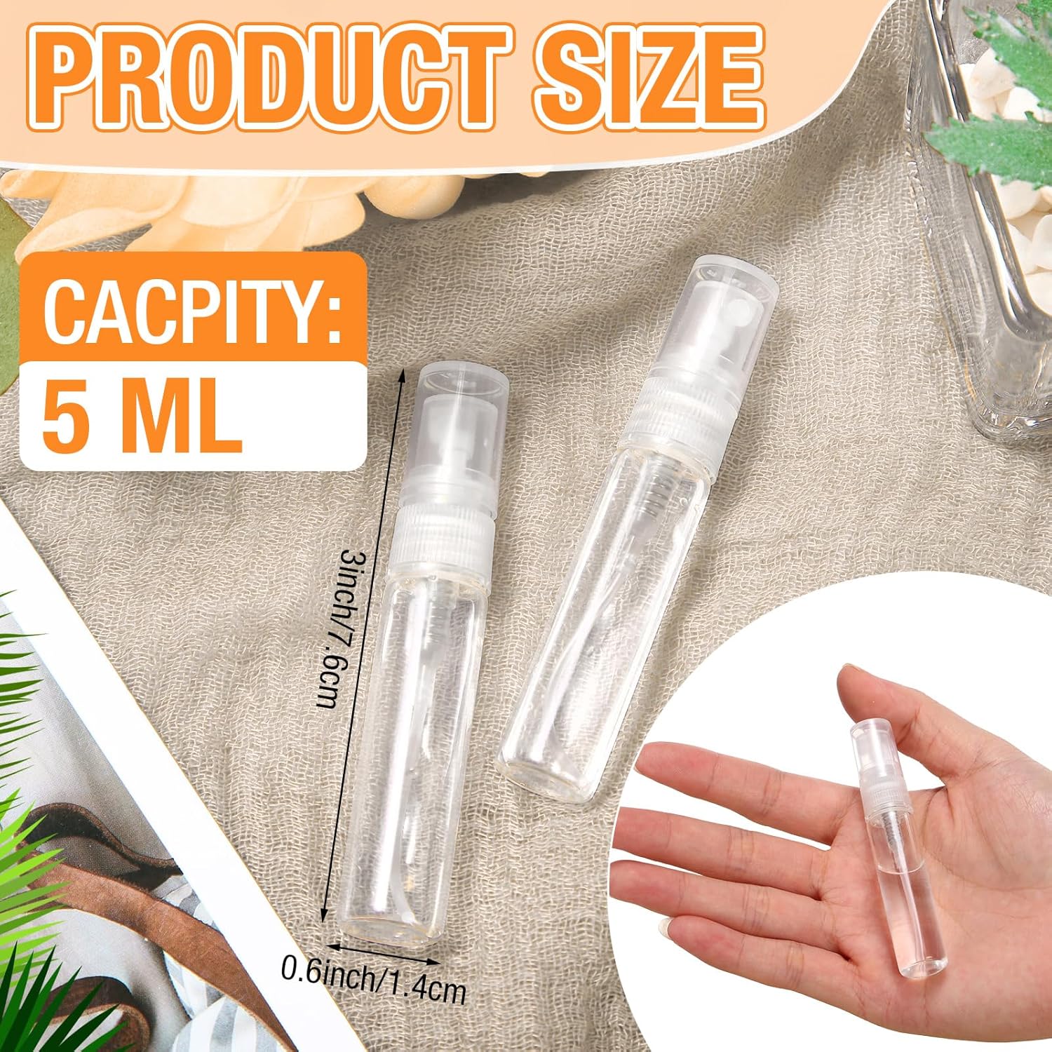 LARGE PACKAGE AND CONVENIENT CAPACITY:This pack of 300 mini glass spray bottles allows you to stock and enough on hand for daily use or to share with others; With a capacity of 5ml, these bottles are ideal for storing small amounts of your favorite liquids and take up minimal space, making them ideal for travel