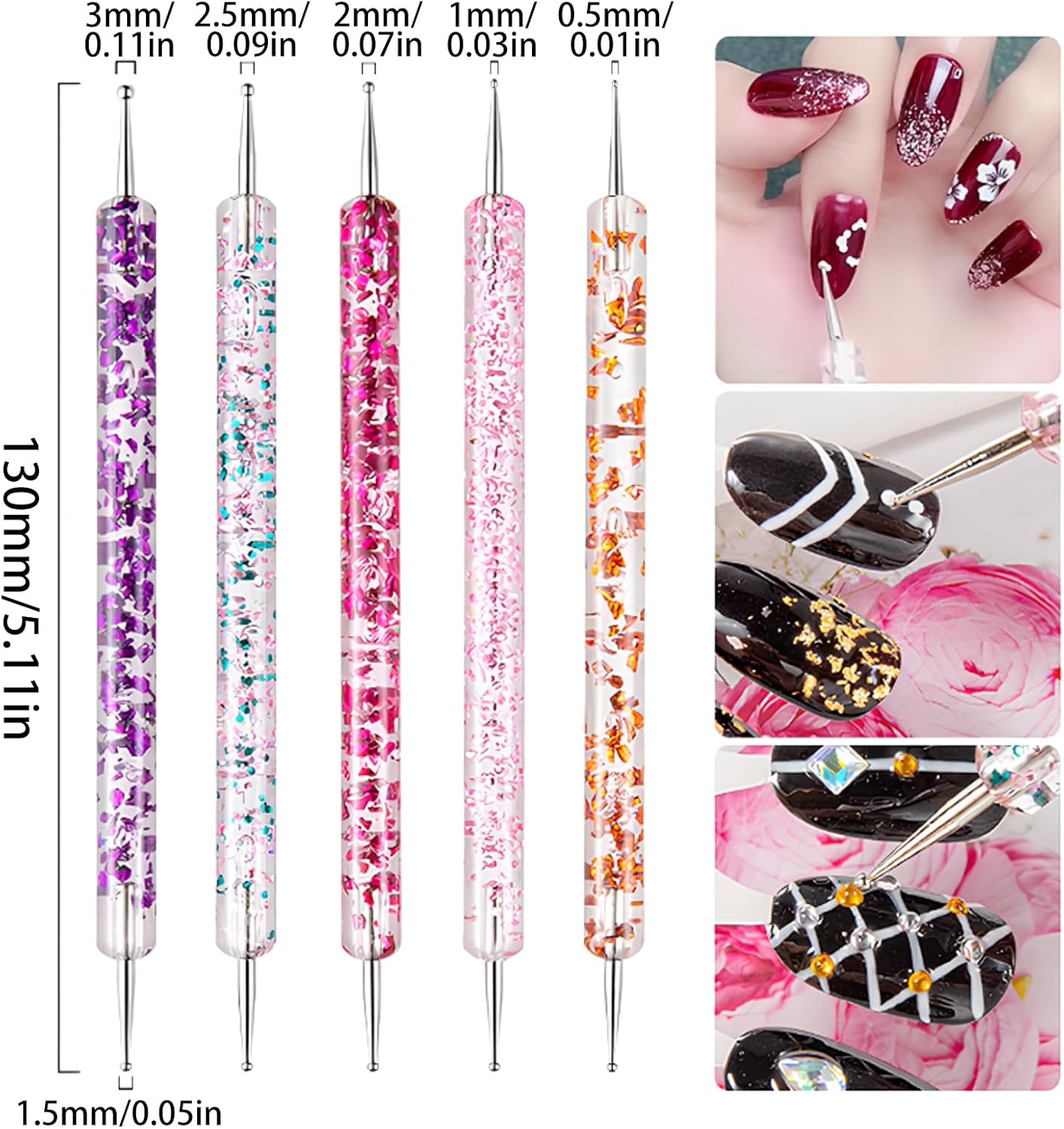 Package includes: Includes 15 pieces black nail art brushes set, 5 pieces nail dotting tool, 3 pieces Nail Art Liner pen, 3pcs double end Nail Art Liner brush, 5 pcs Nail Art gel painting brushes.