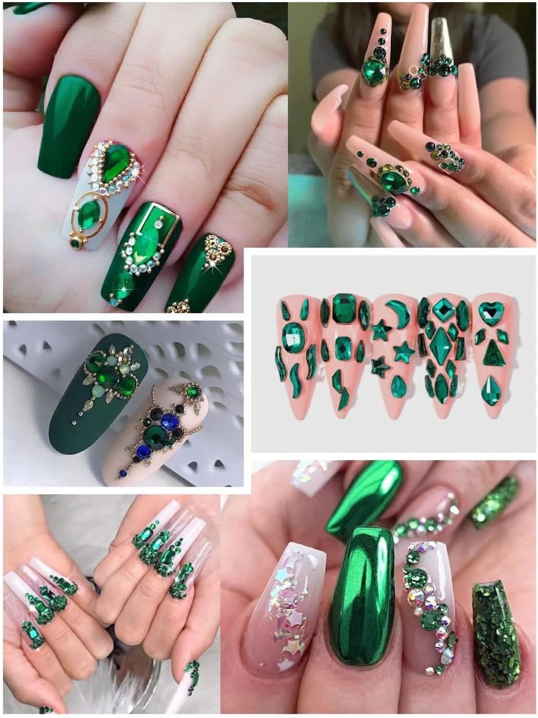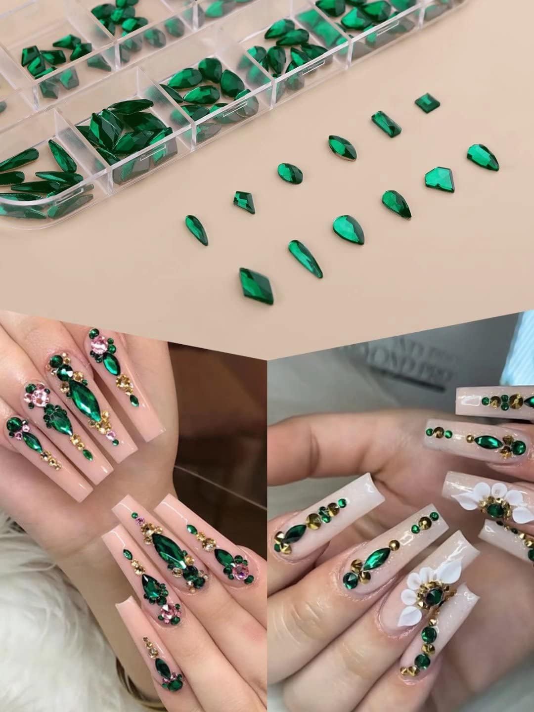 Laat je nagels schitteren: onze diamanten hebben een groene kleur die onder licht oplicht en je nagels schittering en glamour verleent.