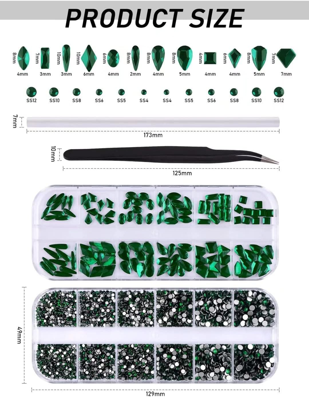 3120 stuks groene nagelkunst strass-set EBANKU glanzende nagelstenen edelstenen platte nagelkristal kralen voor nagel DIY-knutselwerkjes