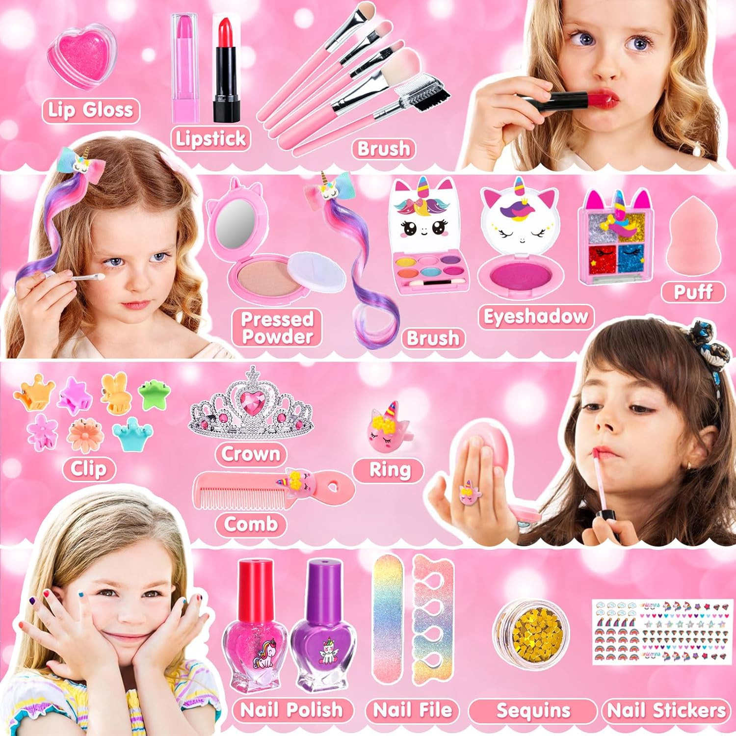 🎁🎁【Perfect cadeau】32 stuks wasbaar make-upspeelgoed, elk meisje heeft een prinsessendroom, deze multifunctionele make-uptas bevat alles wat je nodig hebt om je kinderen op te maken, het is het beste cadeau voor meisjes, of het nu een verjaardag of Kerstmis is of Carnavalsfeest.