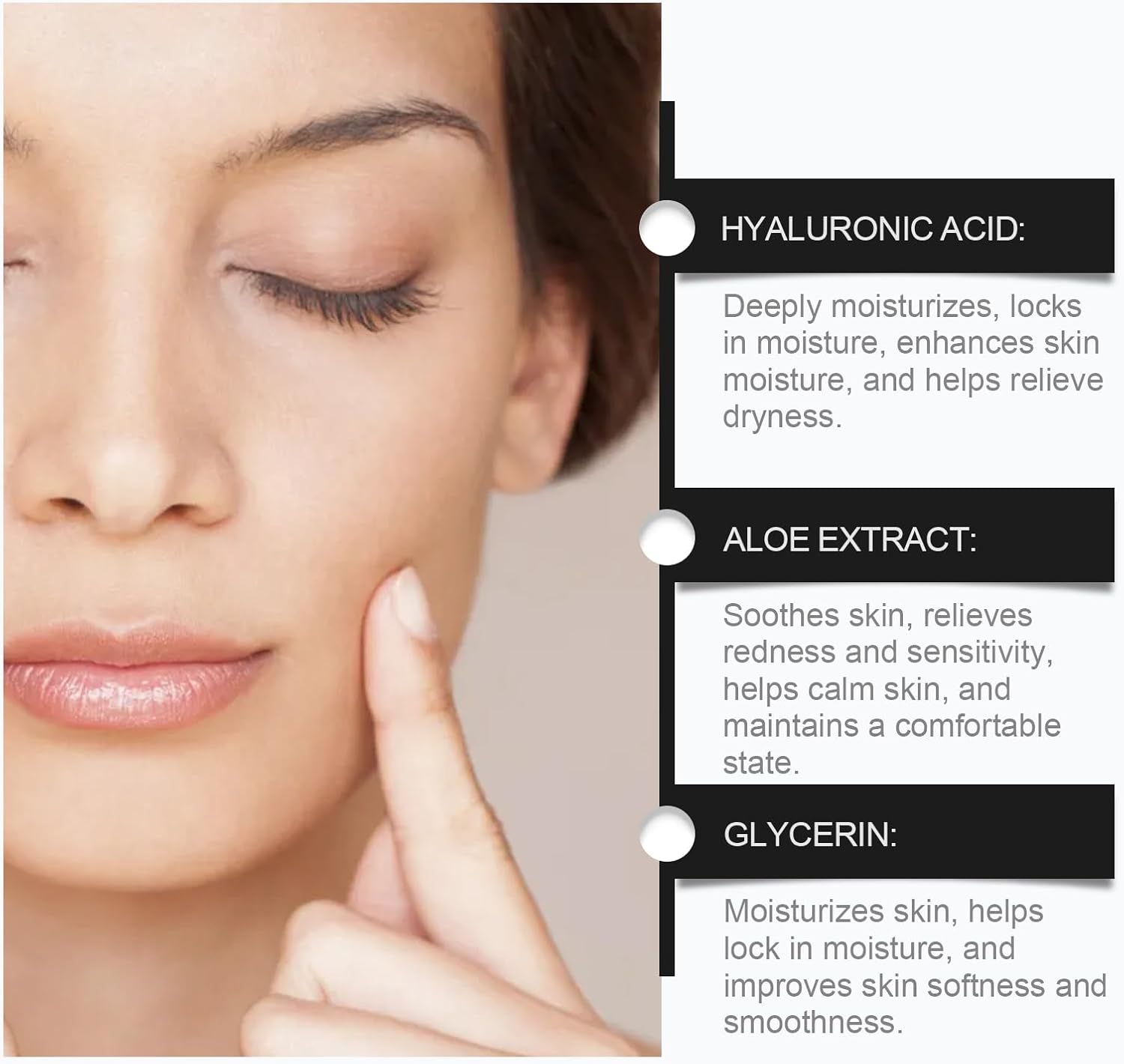 Multifunctioneel: Kan worden gebruikt als dagelijkse vochtinbrengende crème of nachtverzorging, biedt sterke hydratatie en integreert gemakkelijk in het dagelijks leven, waardoor vervelende huidverzorgingsprocedures worden verminderd.