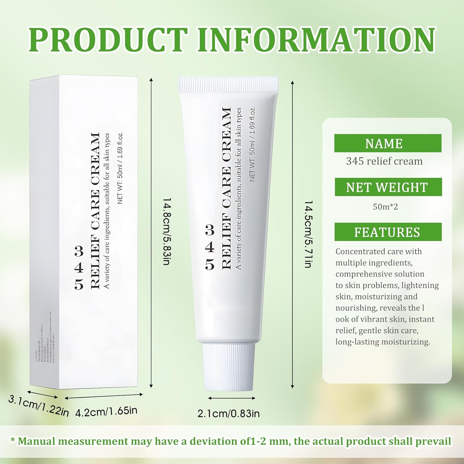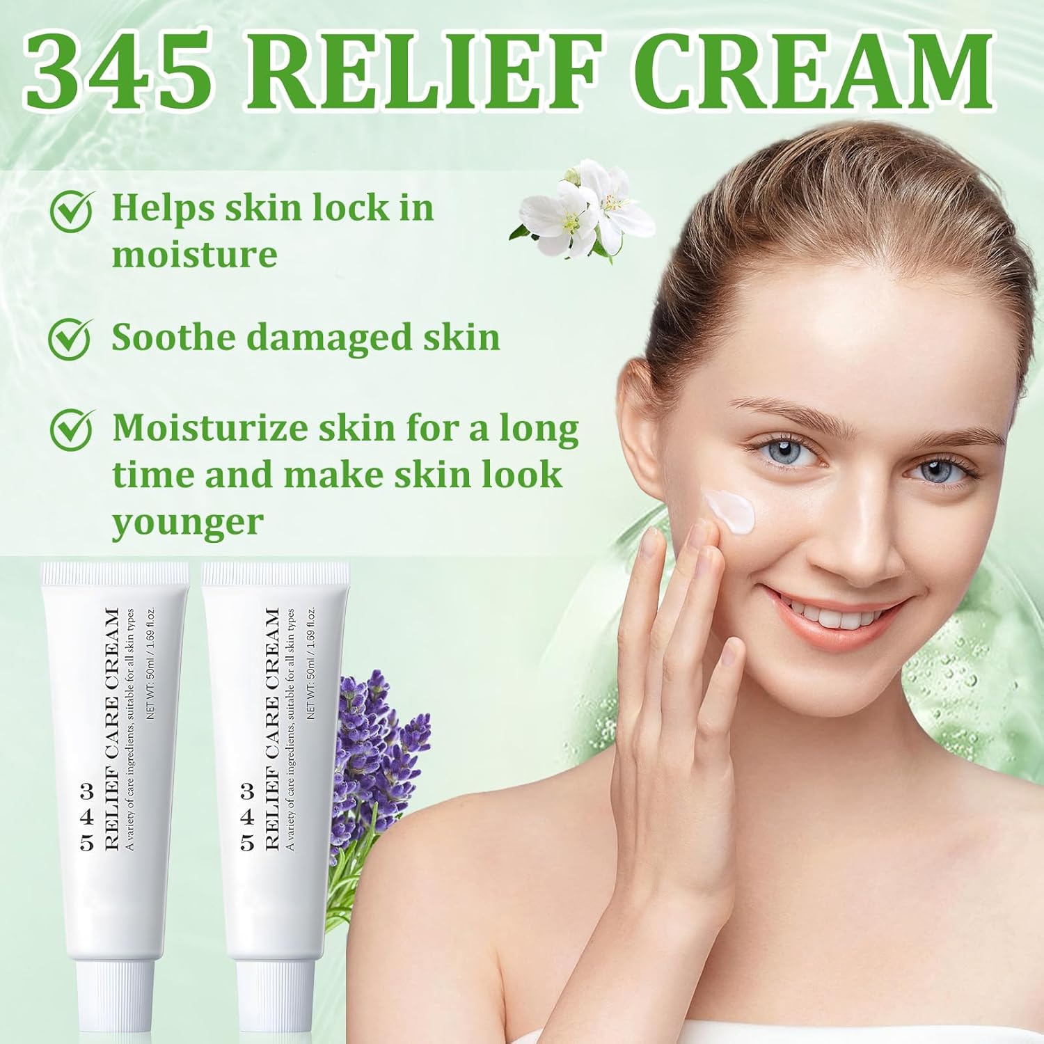 345 Relief Cream, 345 Korean Moisturizer Face, vochtinbrengende gezichtscrème voor droge huid, gezichtscrème 345 crème, geschikt voor acne en alle huidtypes, 2 x 50 ml