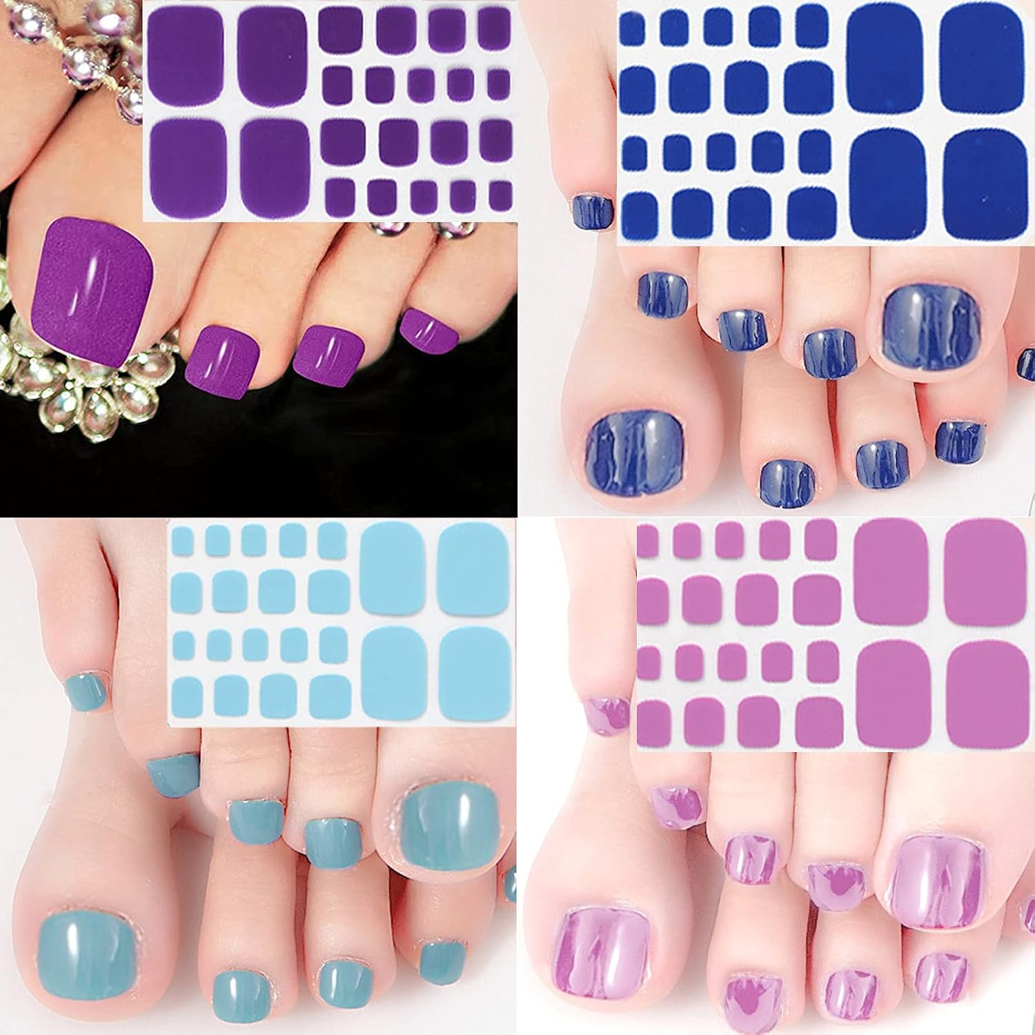Material: these plain colours for toenails are designed with a self-adhesive style, making them easy to apply. Each sheet of nail art stickers is available in a variety of sizes to decorate your toenail. You can choose different colors of nail stickers to decorate your toe on a small part of your toe.
