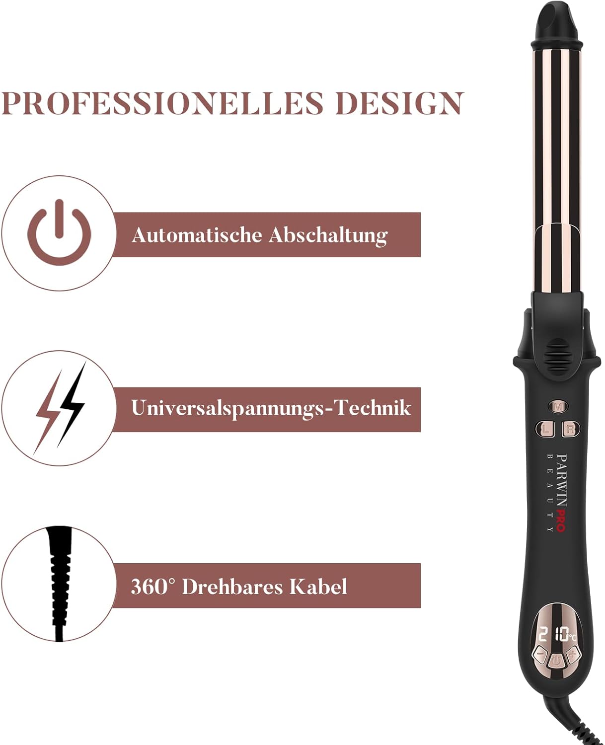 360° Rotatie, Automatische Krultang, PARWIN PRO BEAUTY Curling Iron 25mm, Nano-Titanium Coating, Haarkruller met LCD Display, 120-210℃