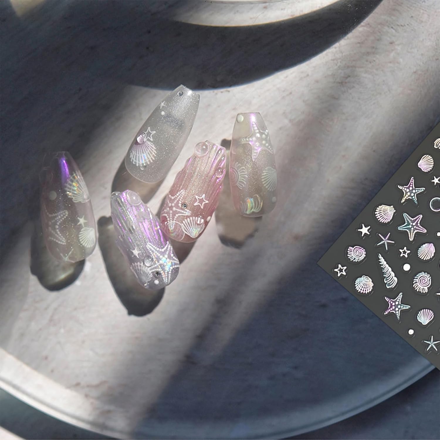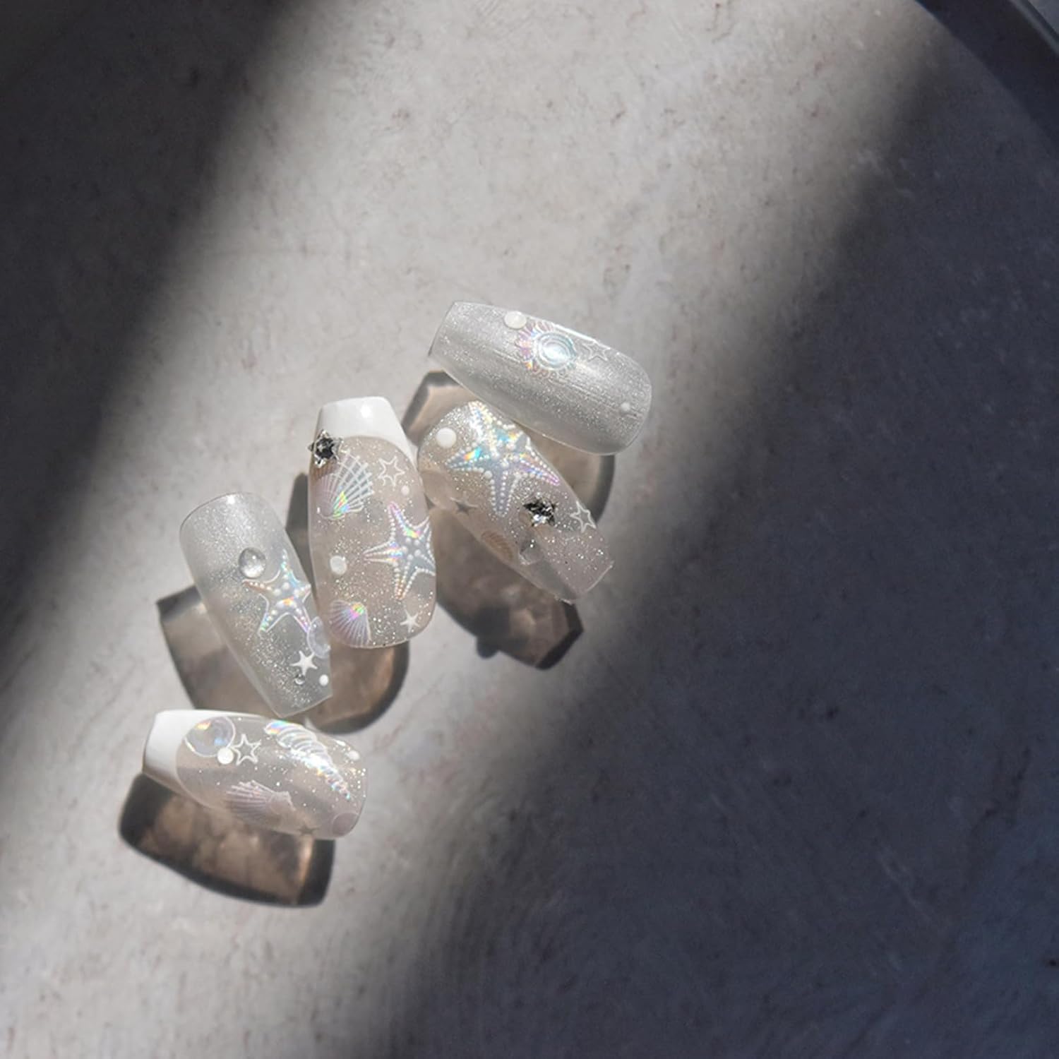 UNIQUE 3D DESIGN: Each nail jewellery shows a three-dimensional sea motif, including beautiful shells and starfish and other elements that instantly give your fingertips freshness.