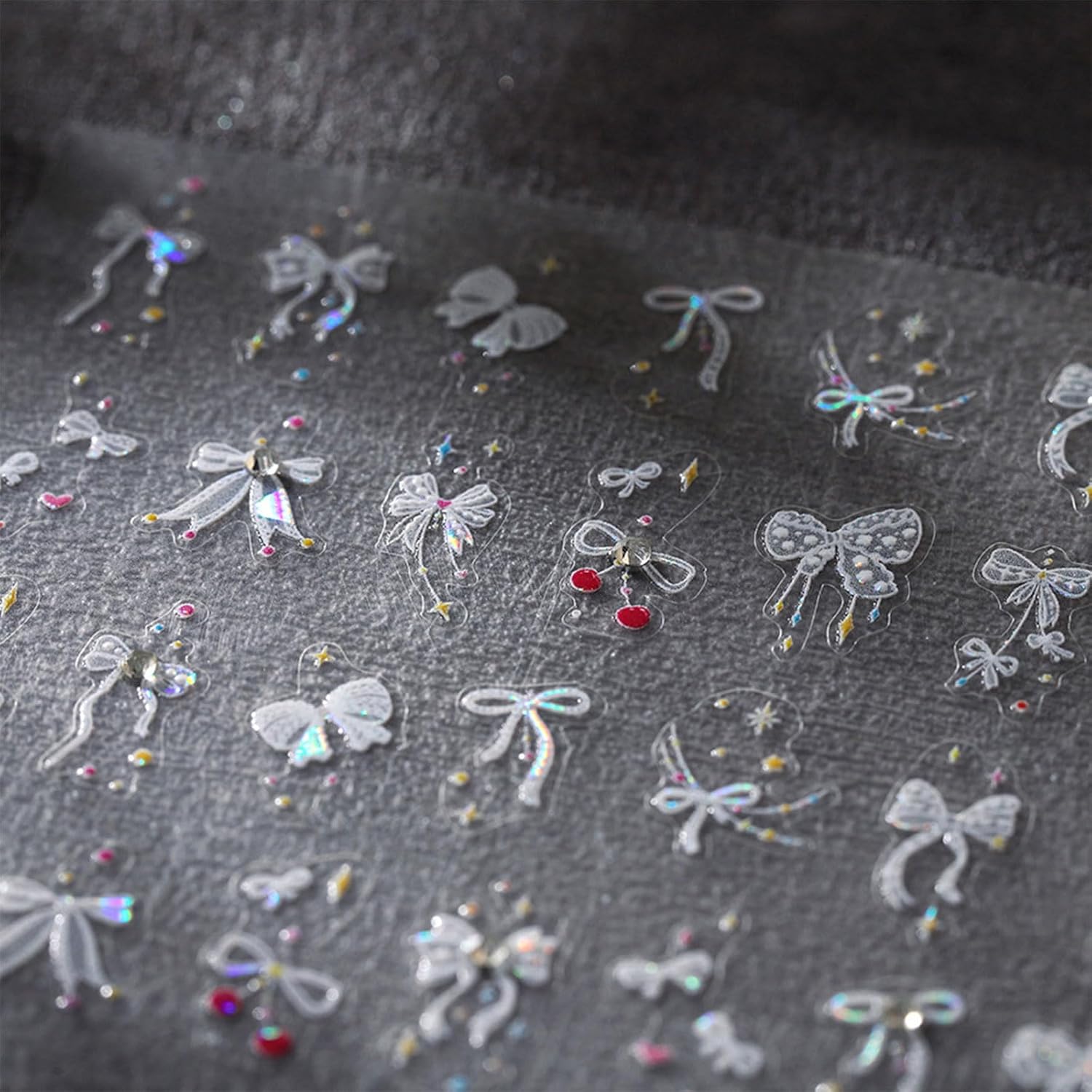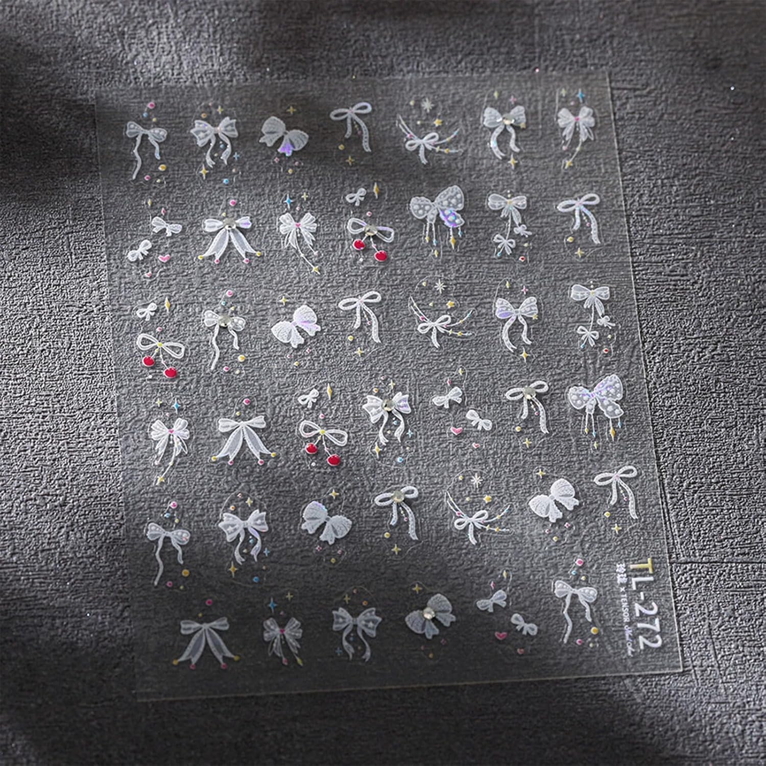 3D Witte Strik Nail Art Sticker 1 Vellen Nagelsticker Zelfklevende Nagel Decoratie
