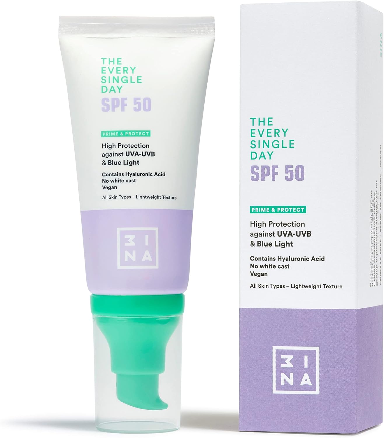 5 reviews for 3INA MAKEUP The Every Single Day SPF50 Zonnecrème voor gezicht met hyaluronzuur, hoge bescherming tegen UVA-UVB-stralen en blauw licht, lichte zonwering voor het gezicht, veganistisch, dierproefvrij
