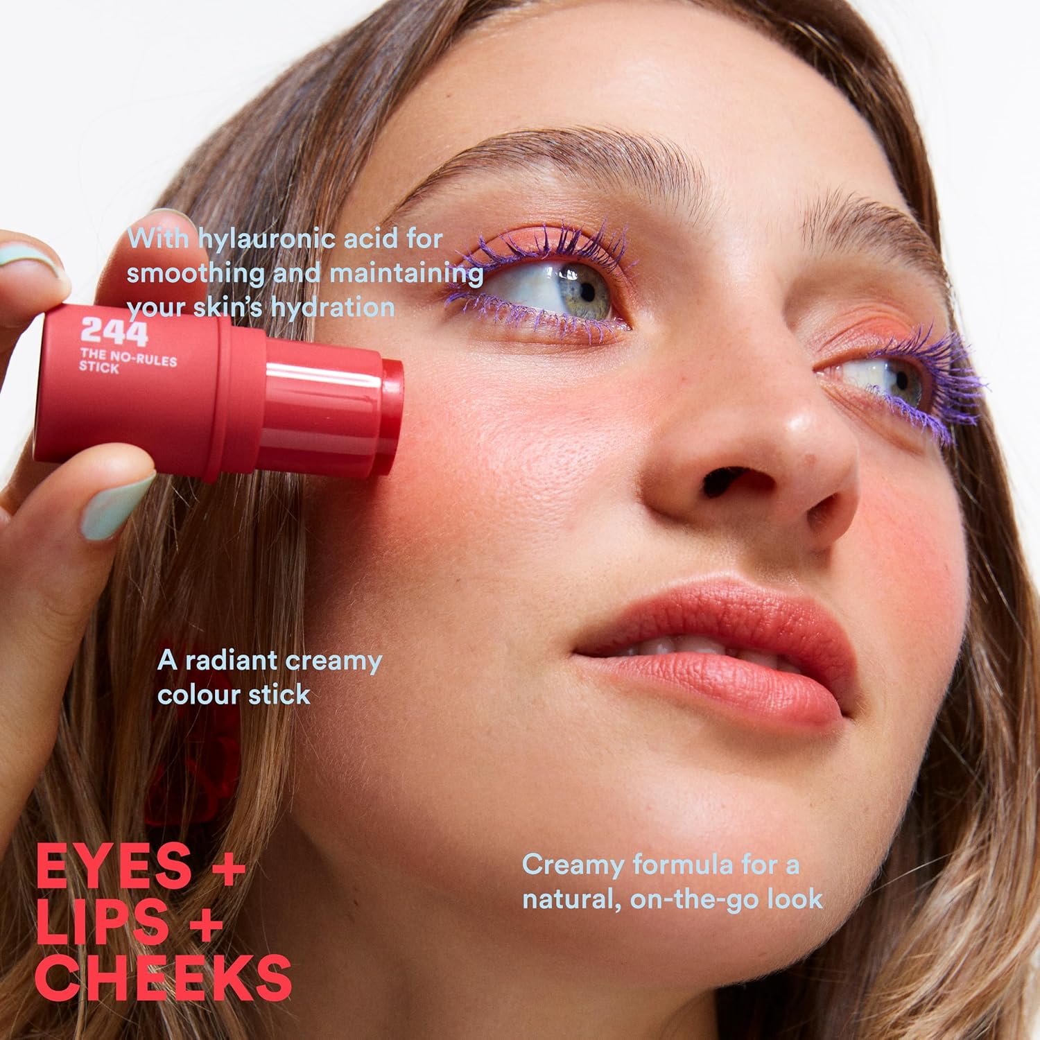 3INA MAKEUP The No-Rules Stick 244 (Mini), Red, Blush Stick for Eyes, Lips, Cheeks with Hyaluronic Acid, Cream Blusher for Natural and Luminous Finish, Travel Size, Vegan,