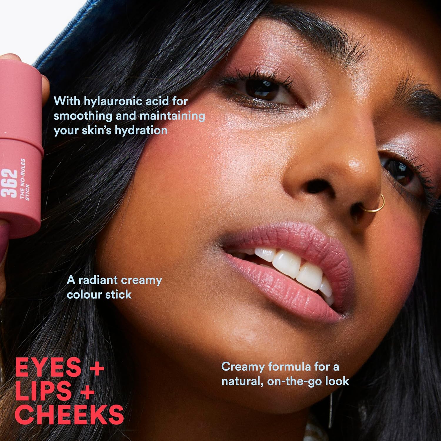 3INA MAKEUP The No-Rules Stick 362 (Mini), Pink, Blush Stick for Eyes, Lips, Cheeks with Hyaluronic Acid, Cream Blusher for Natural and Luminous Finish, Travel Size, Vegan,