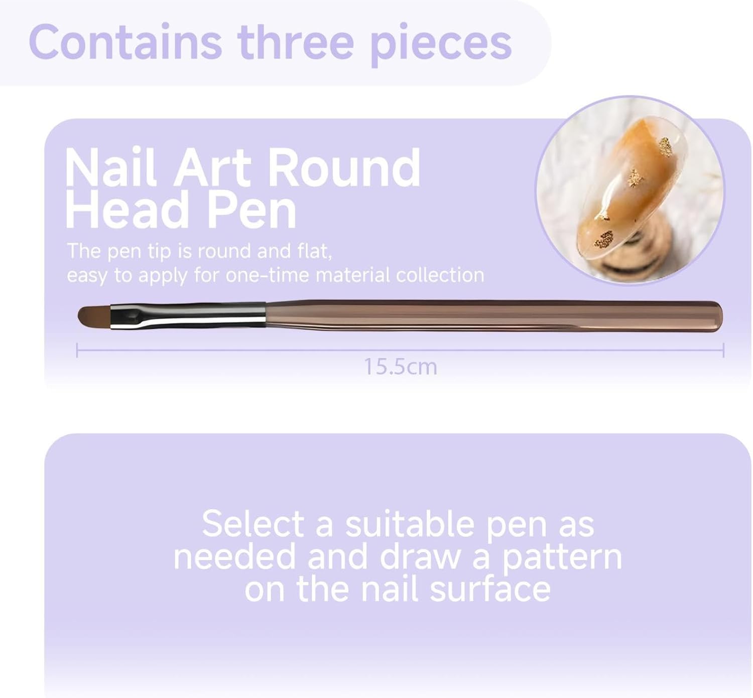 3PCS Nail Art Brushes Set, Nail Design Painting Brushes Builder Gel Brush Nail Dotting Tools Nail Fine Liner Brush