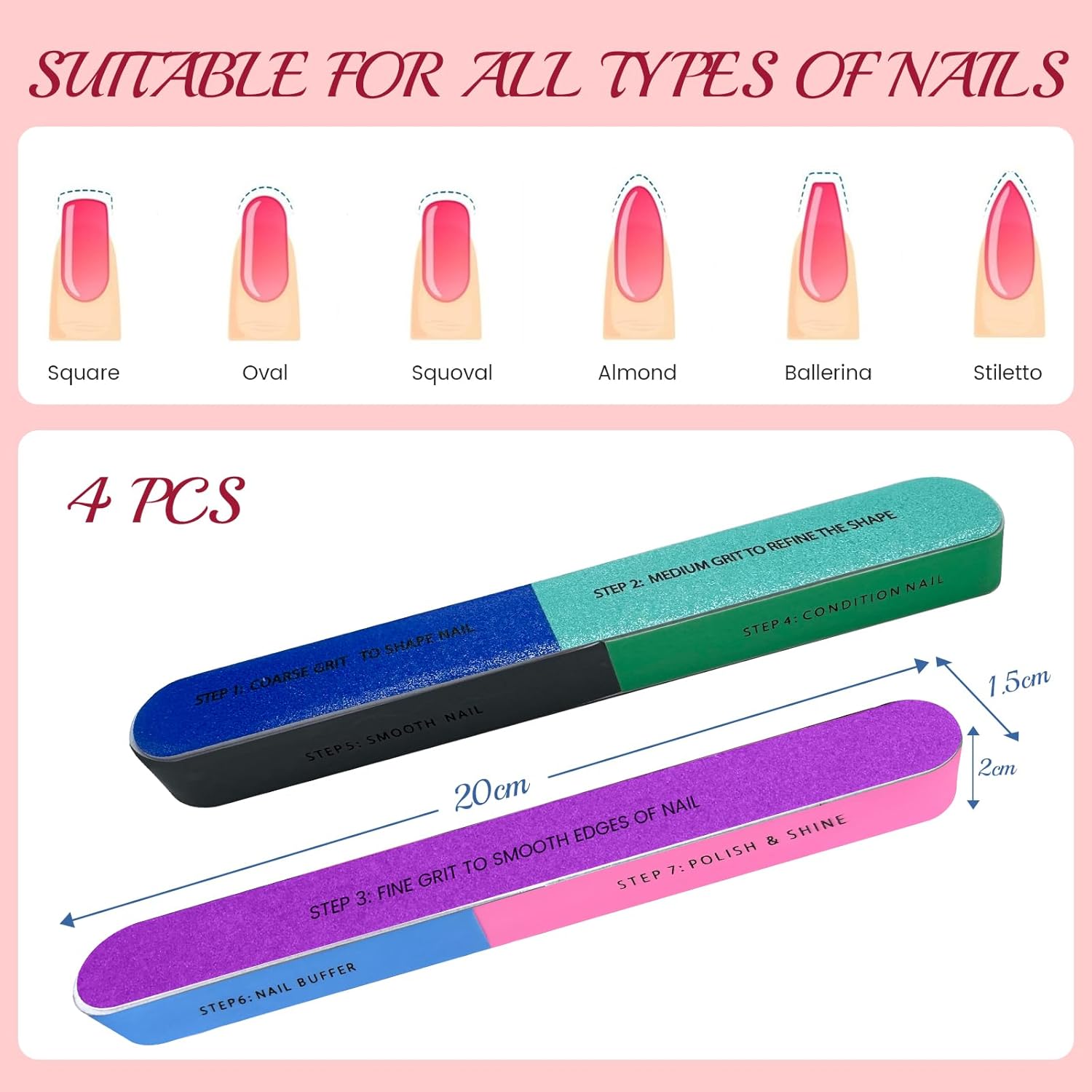4-delige professionele nagelvijlset, 7 zijden polijstvijl, nagelbuffer voor natuurlijke nagels, polijstvijl, vingernagels, veelzijdig gebruik voor nagels
