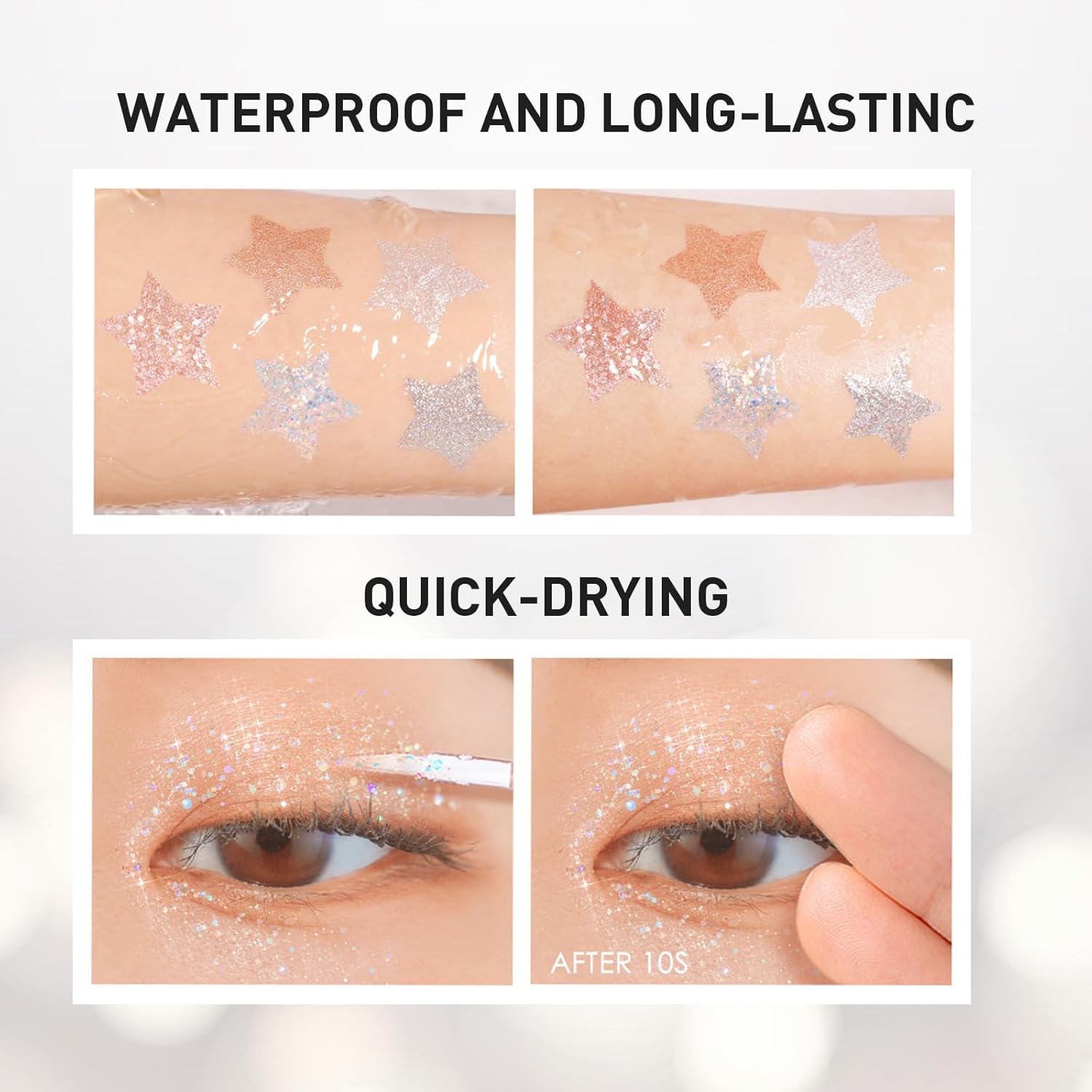 4-delige vloeibare oogschaduwset Crystal Diamond hoogglans-vloeistofliner Shimmer Glitter Highlight Metallic Liquid Shadows sneldrogende pailletten parelglans oogmake-up cosmetica