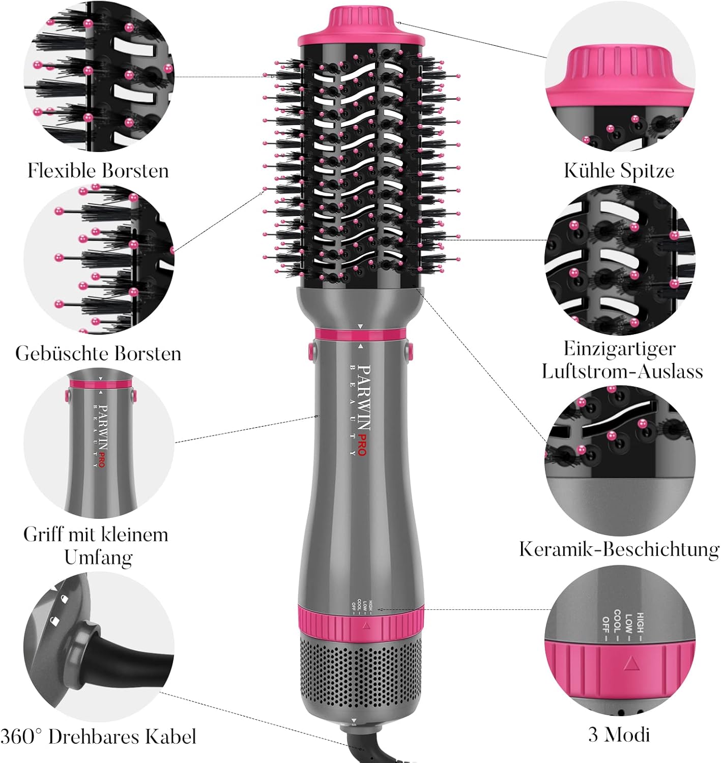 Ich habe den “parwin pro beauty” Haarstyler gekauft und bin sehr beeindruckt von diesem Produkt. Der Haarstyler hat eine hohe Leistung und ist sehr vielseitig einsetzbar. Die verschiedenen Aufsätze erlauben es, das Haar auf viele verschiedene Arten zu stylen, sei es glätten, locken oder wellen.Was mir besonders gefällt, ist die Temperaturregelung des parwin pro beauty. Man kann die Temperatur sehr präzise einstellen, was bei verschiedenen Haartypen und -texturen sehr wichtig ist. Ich habe selbst feines Haar und war besorgt, dass der Haarstyler mein Haar schädigen könnte, aber das war überhaupt nicht der Fall. Mein Haar fühlt sich immer noch gesund und weich an, auch nachdem ich es mit dem parwin pro beauty gestylt habe.Die Handhabung des Haarstylers ist sehr einfach und intuitiv. Die Aufsätze sind einfach auszuwechseln und der Haarstyler erwärmt sich sehr schnell. Ich bin oft in Eile und schätze es sehr, dass ich mein Haar schnell und einfach stylen kann.Insgesamt bin ich sehr zufrieden mit dem parwin pro beauty Haarstyler. Er ist preislich sehr attraktiv im Vergleich zu anderen Produkten auf dem Markt und bietet eine hohe Leistung und Qualität. Ich würde diesen Haarstyler jedem empfehlen, der auf der Suche nach einem vielseitigen und zuverlässigen Styling-Tool ist. Ich würde diesem Produkt definitiv fünf Sterne geben!