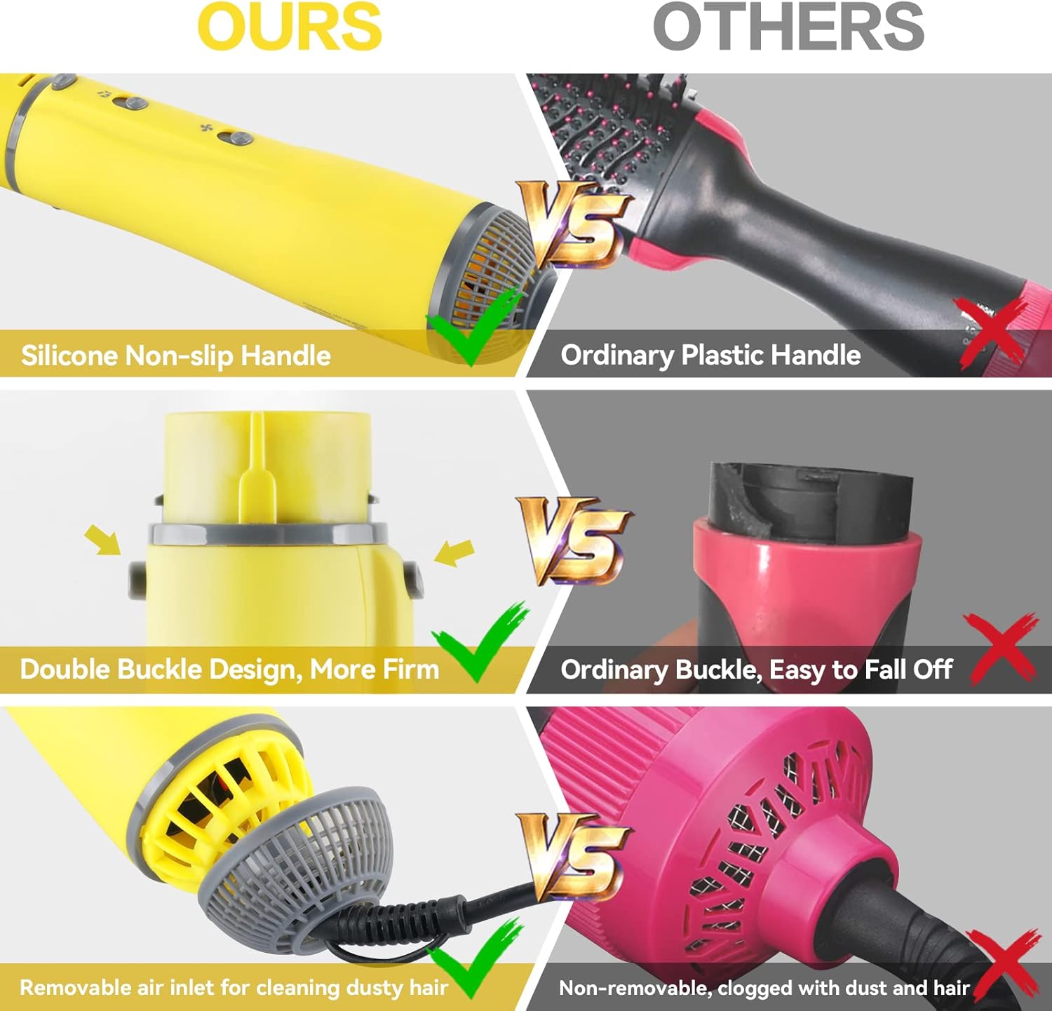 4-in-1 warmeluchtborstel: de WeChip heteluchtborstel is een 4-in-1 multifunctionele elektrische haarborstel, die als haardroger, volumegever, ronde borstelföhn en stijltang kan worden gebruikt. 4 verschillende borstelkoppen kunnen aan je verschillende styling-behoeften voldoen, of je nu lang haar hebt of voor kort haar, de stylingborstel kan snel het gewenste kapsel creëren en je tijd en geld besparen