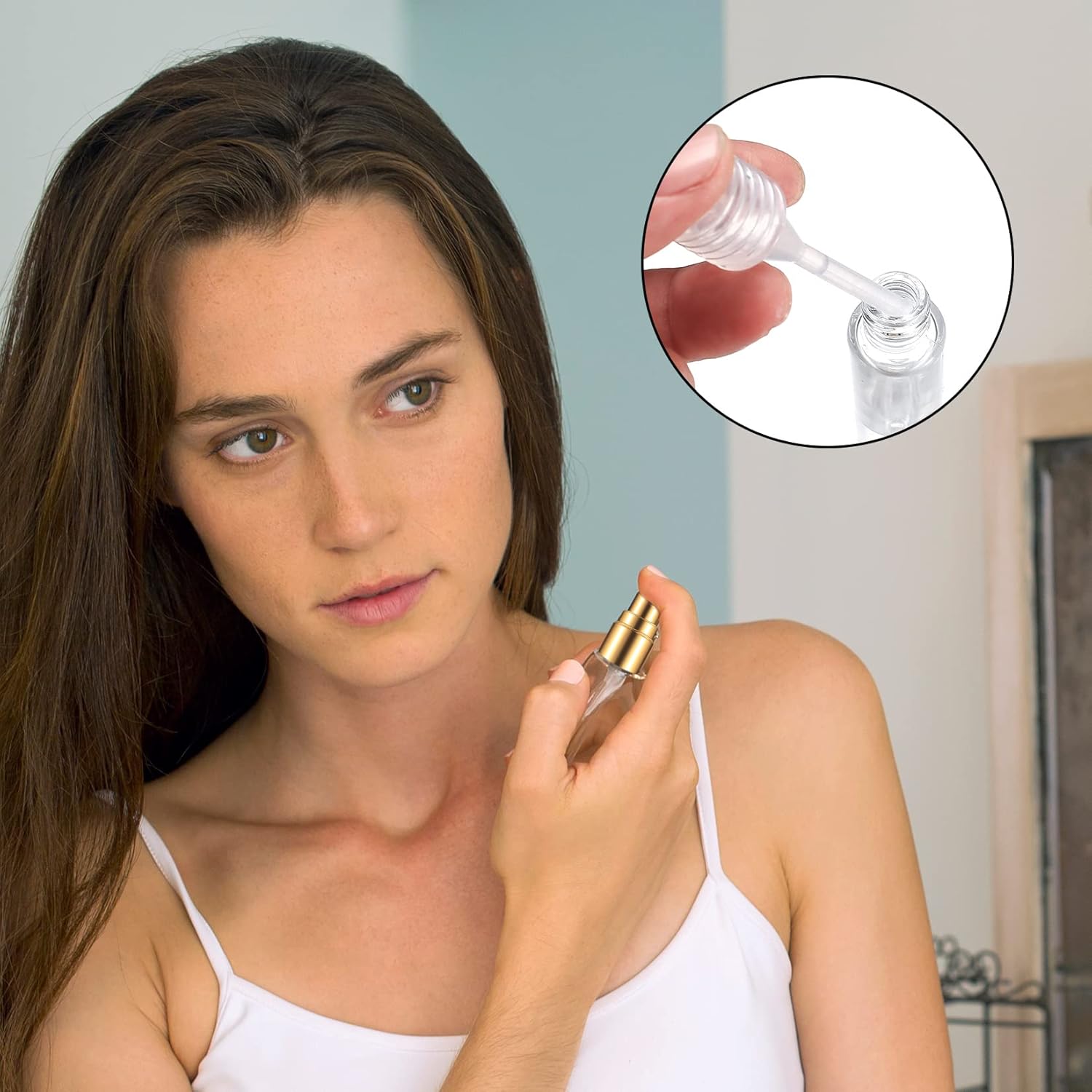 Breed Toepassing: Geschikt voor de meeste vloeistoffen, zoals parfum, etherische oliën, make-upverwijderaar, toners, schoonmaakspray, enz., geschikt voor reizen, vakanties, zakenreizen, fitness, daten, schoonheid, haarverzorging, huishoudelijke schoonmaak en andere gelegenheden.