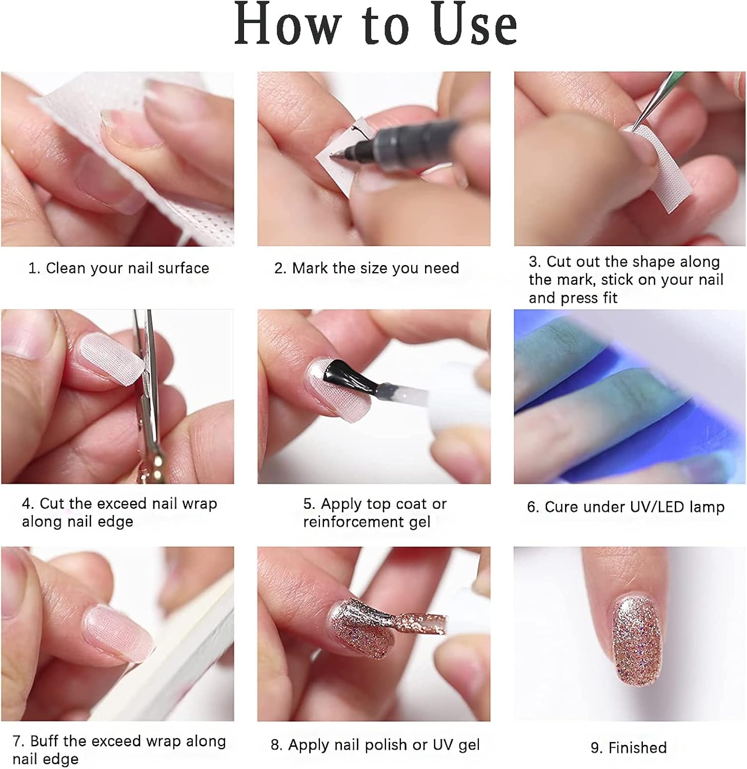 Easy to use: The nail wrap is self-adhesive and does not need to be applied with glue. Just cut a small piece of nail that matches the size of the nail, nail tip and nail