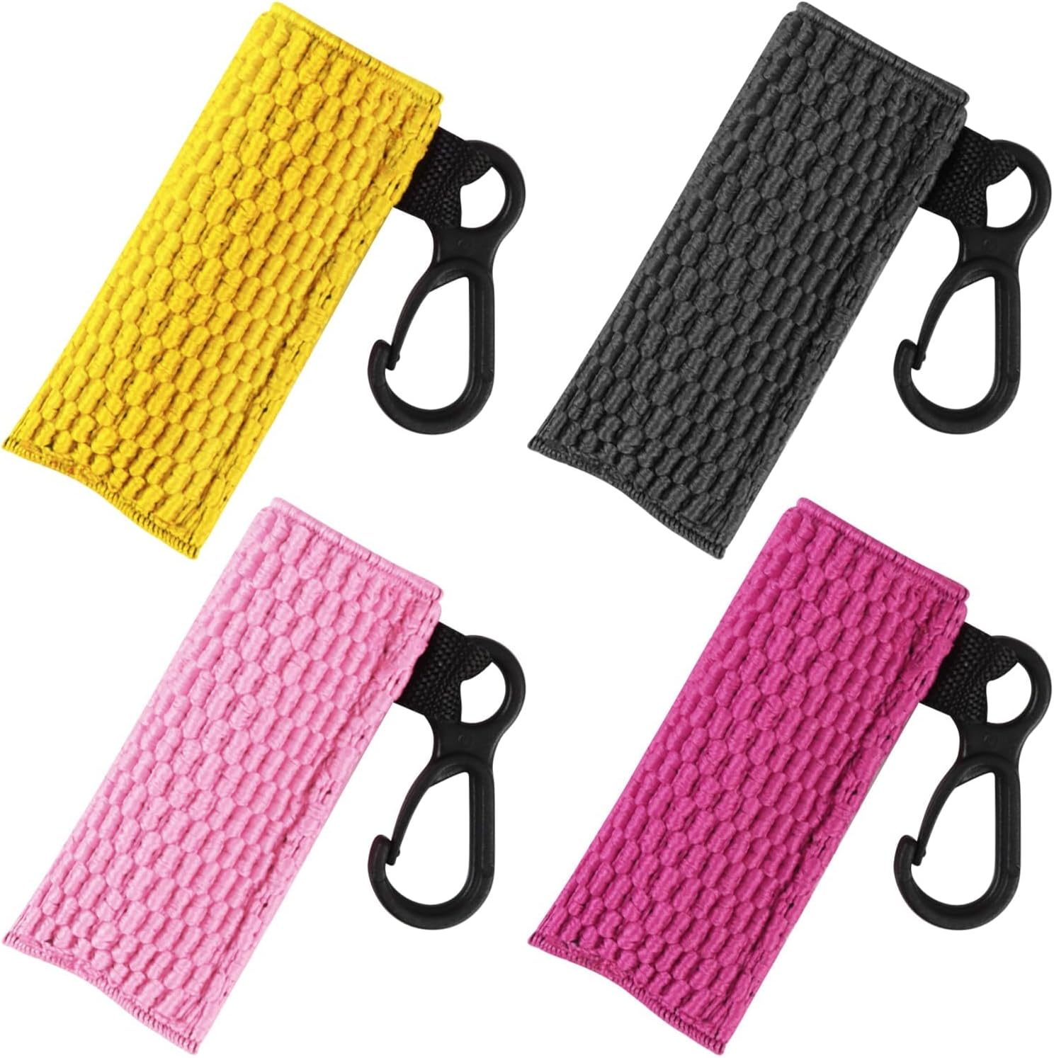 Lippenbalsem Sleutelhanger Houder Mouwen – 4 Pack, Elastische Pouch voor Lippenbalsems, Lipgloss en Lipsticks met Sleutelhanger Clip (zwart, Geel, Roze, Rose Red)