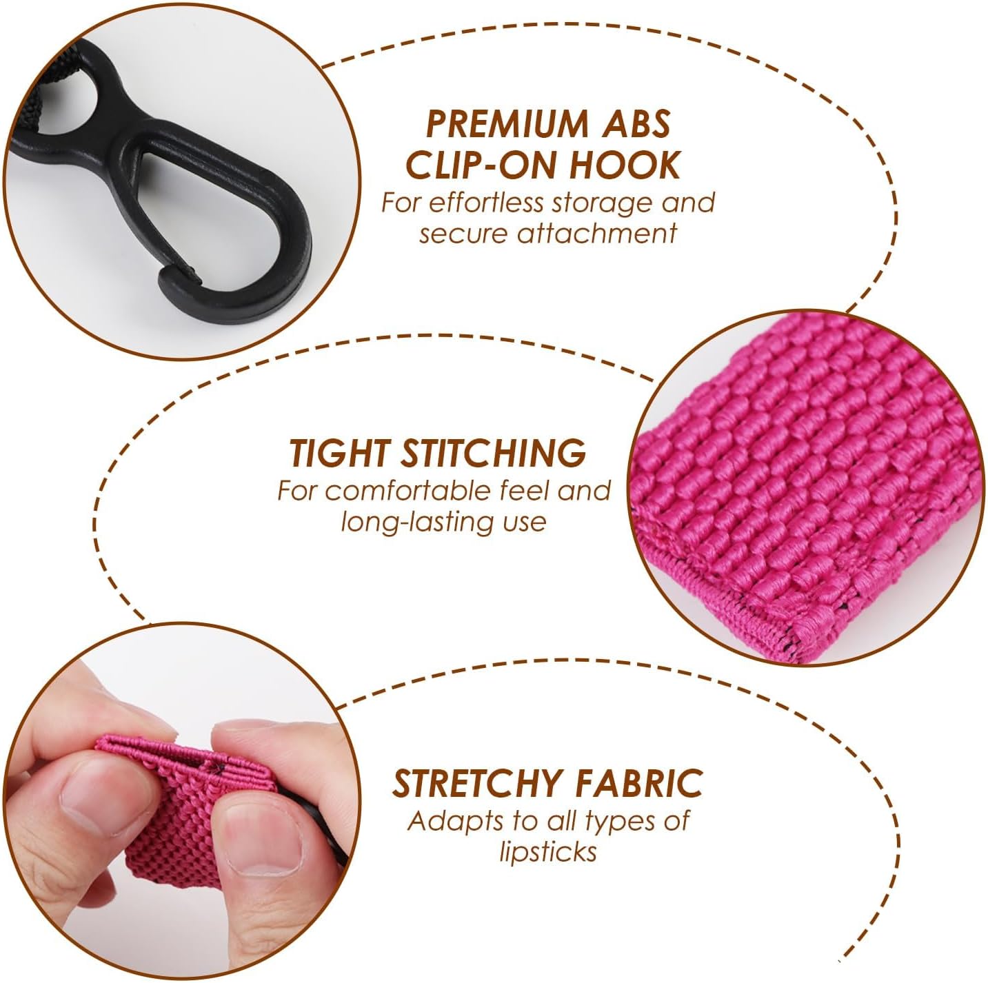 Premium elastische stof: Gemaakt van een premium, strak gebreide elastische stof, deze sleutelhangers voor lippenbalsemhouders bieden een veilige en goede pasvorm voor de meeste standaardformaat lippenbalsems, lippenstiften en lipglosses. Flexibel en duurzaam, ze bieden een soepele en veilige grip, zodat je items er niet gemakkelijk uit glijden
