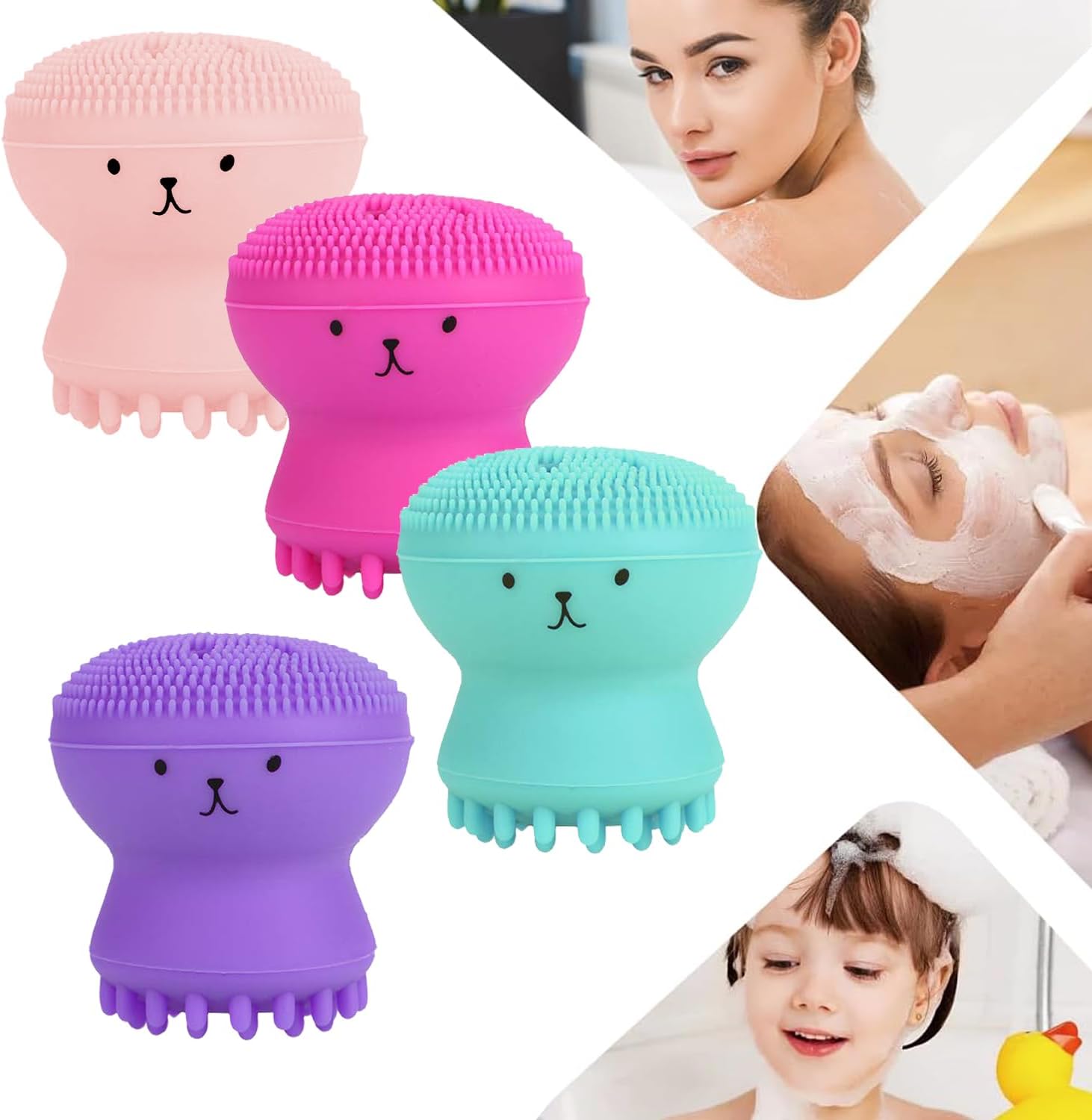 4 stuks siliconen kleine inktvis gezichtsreinigingsborstel, siliconen waterdichte gezichtsmassageapparaat, peeling en vetreinigingsborstel voor dieptereiniging, dagelijkse verwijderaar