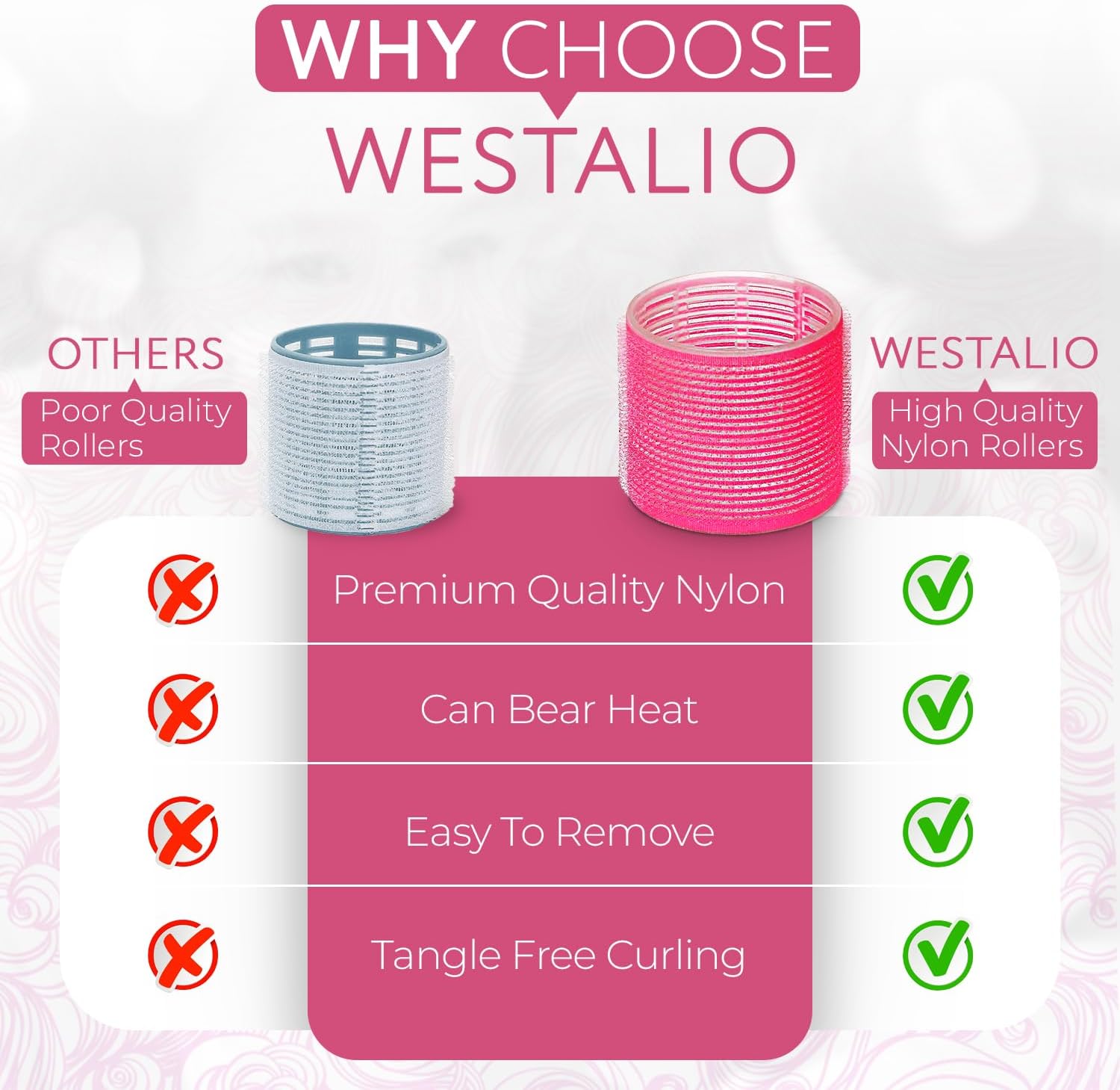 Premium kwaliteit: Westalio Self Grip Haarrollers met clips zijn gemaakt van dik nylon maakt ze duurzaam en veilig te gebruiken met haardrogers. Krult haar Perfect zonder je haar te beschadigen.