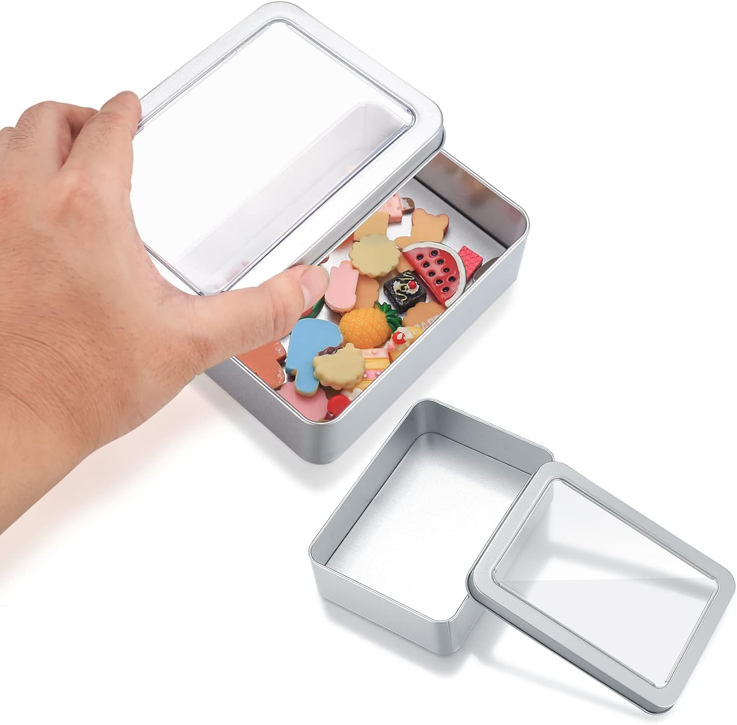 Transparent lid design: Each box contains a removable lid. On top of the lid there is a transparent plastic plate, so you can look inside the box without having to remove the lid.