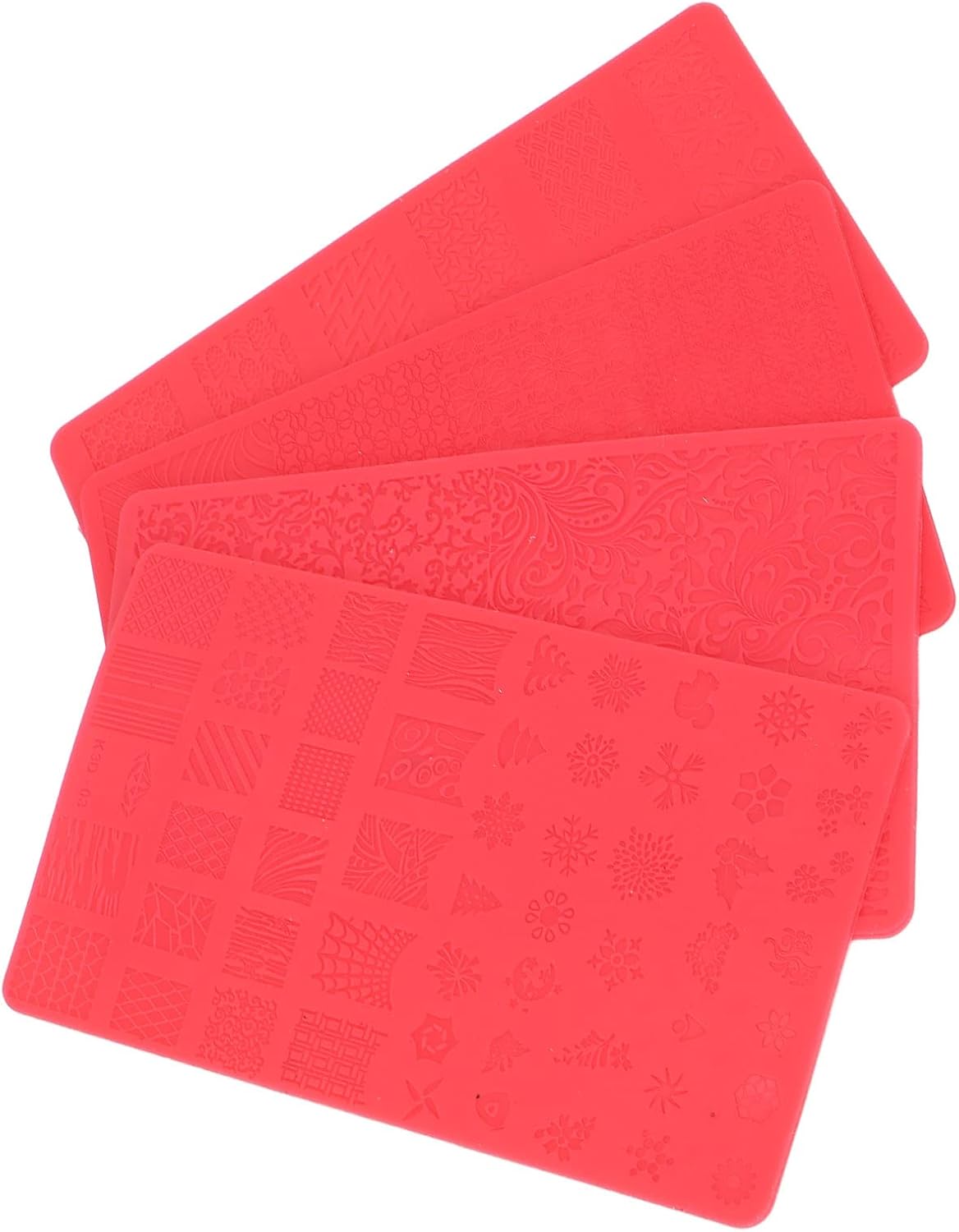 4pcs Nail Stamping Template, Soft Silicone Nail Carving Stencil Mold Portable Nail Art Tool For Salon DIY