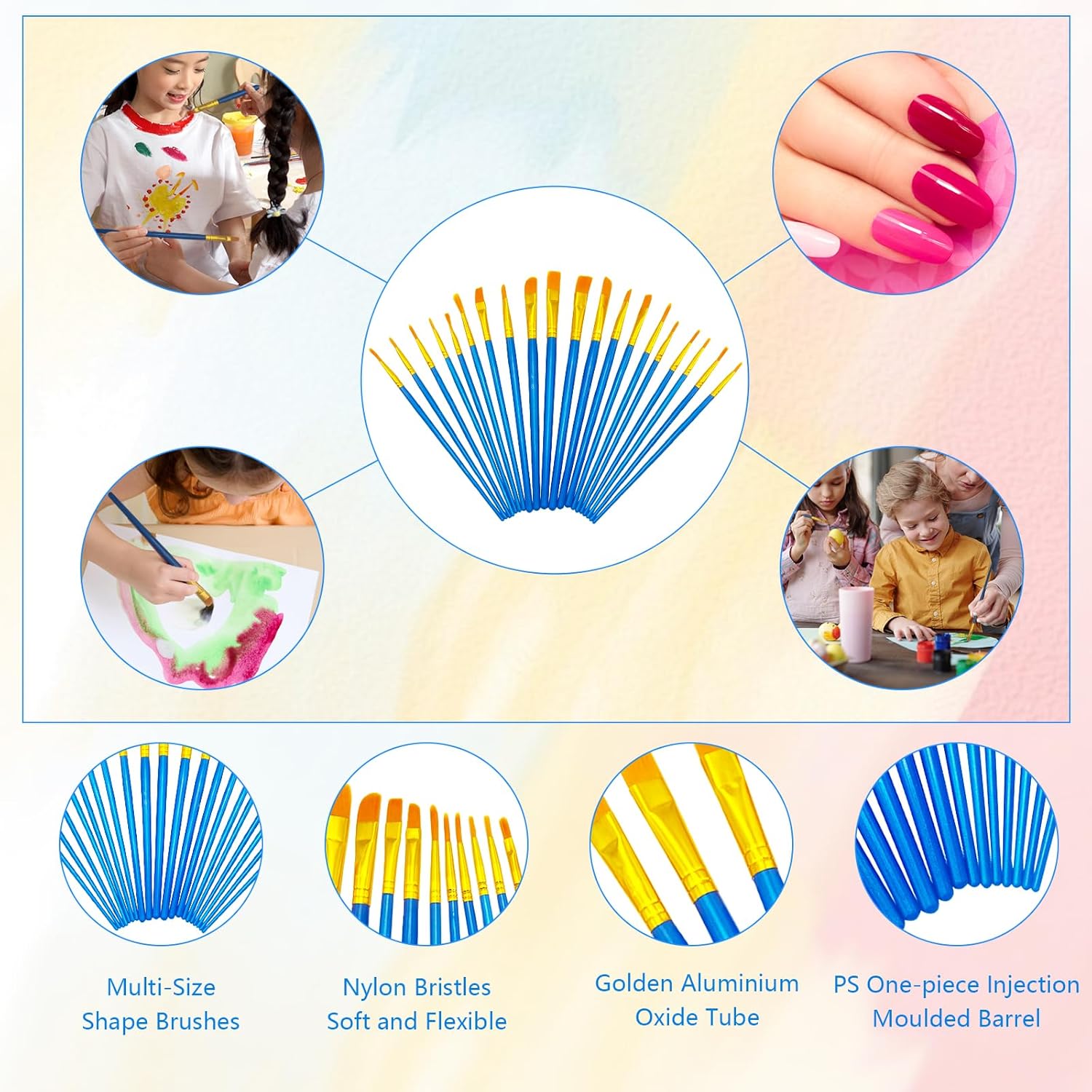 🎨 De nylon borstelharen van de kwasten zijn zacht en flexibel, en de handgrepen zijn middelgroot voor een comfortabele grip, zodat ze gemakkelijk te bedienen en te gebruiken zijn.