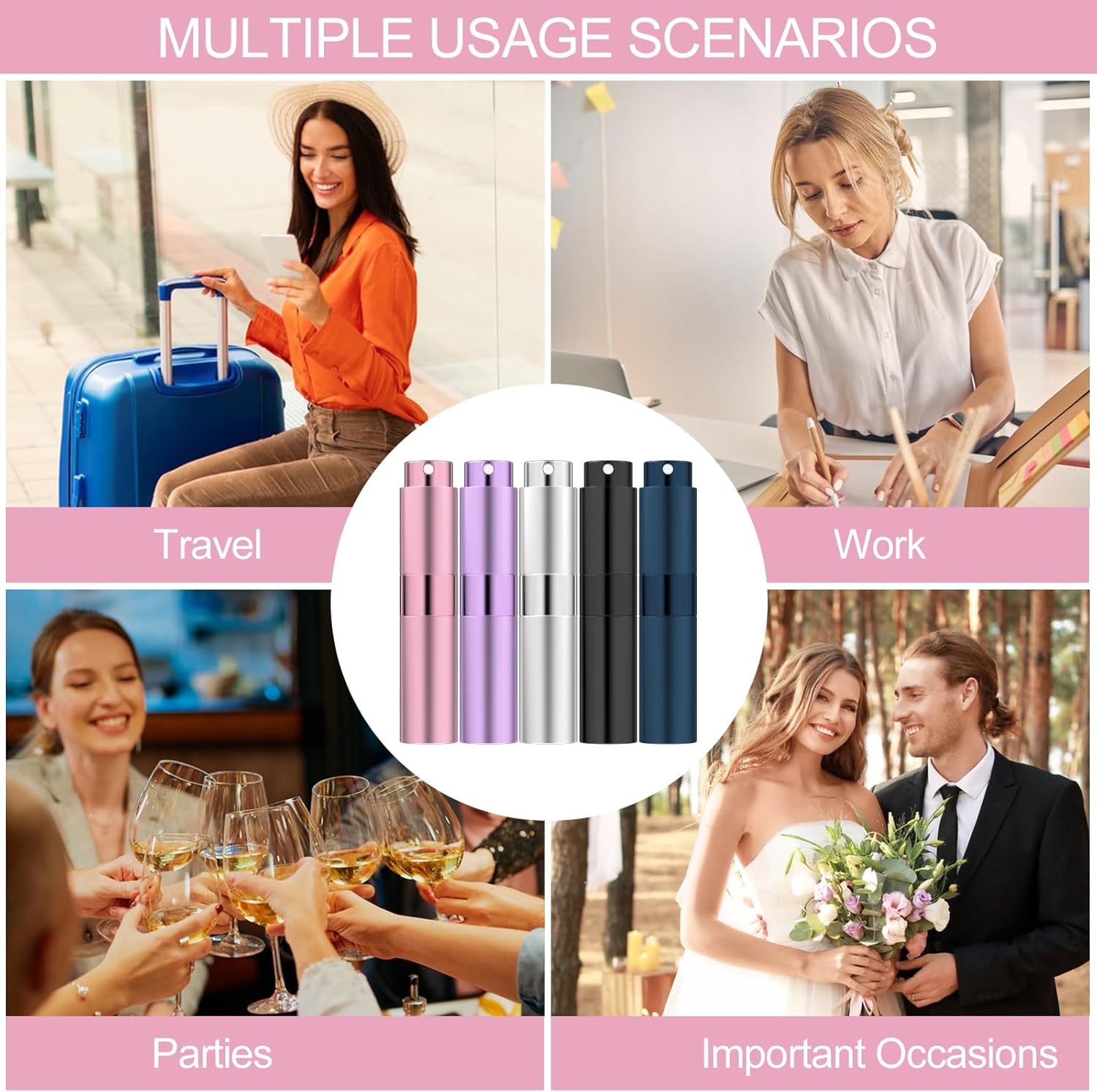 5 stuks parfumhouders voor onderweg, parfumverstuiver, verstuiver, spuitfles, lege spuitfles, flessenhouder, verstuiverflessen, 8 ml, 5 kleuren