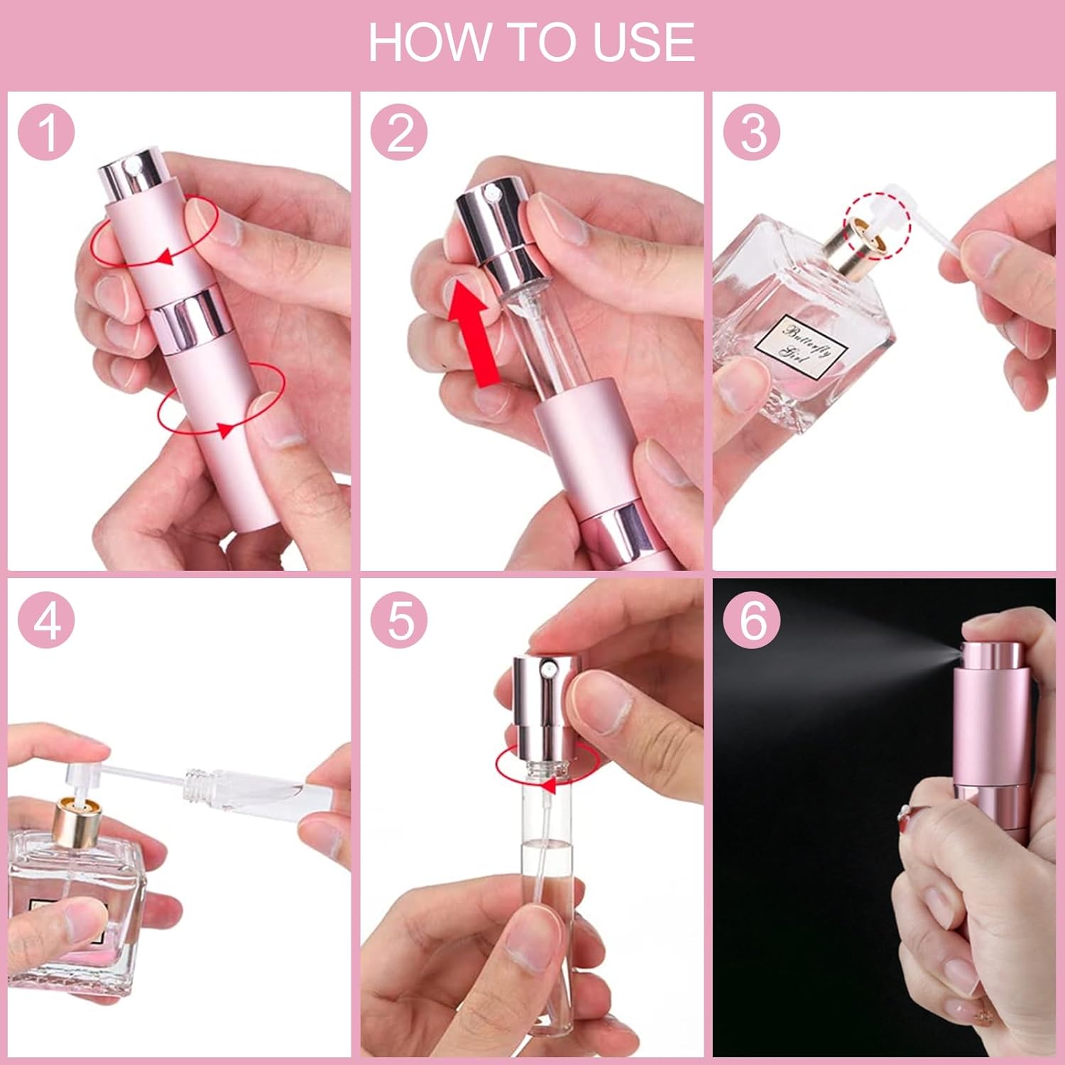 Draagbaar design: deze verstuiver is zo ontworpen dat hij draagbaar is. De inhoud van 8 ml is klein en prachtig en kan gemakkelijk in tassen, tassen enz. worden gestoken, wat handig is voor gebruikers om in verschillende scenario’s zoals reizen en reizen te dragen en altijd en overal aan de behoeften van het gebruik van parfum, mondspray enz. te voldoen.
