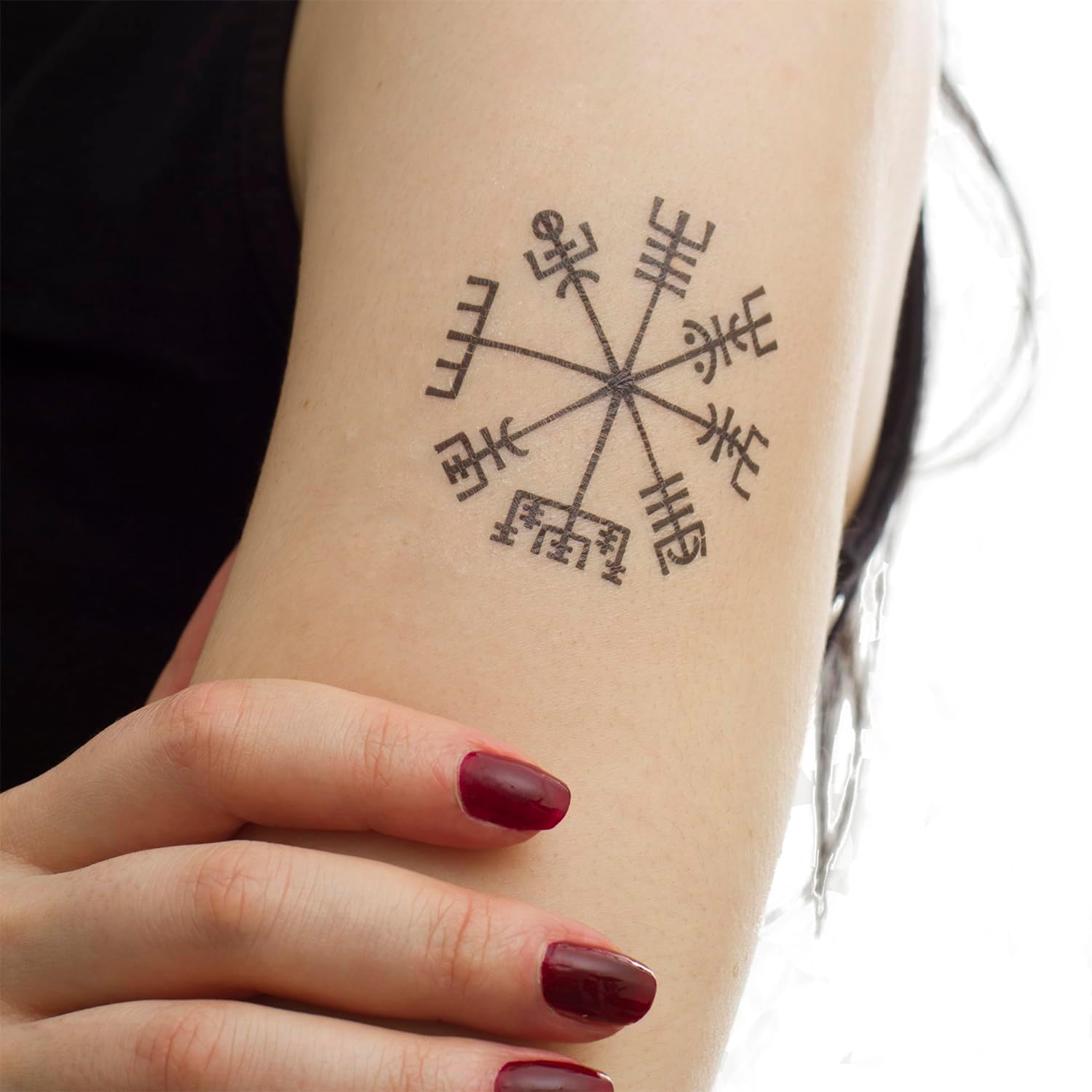5 x Viking-kompas – Vegvísir – tattoo in zwart – No China!