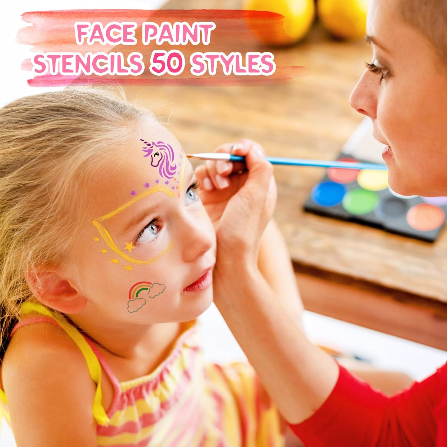 found it difficult to use just left blobs of paint on my daughter’s face instead of the shape on the stencils.