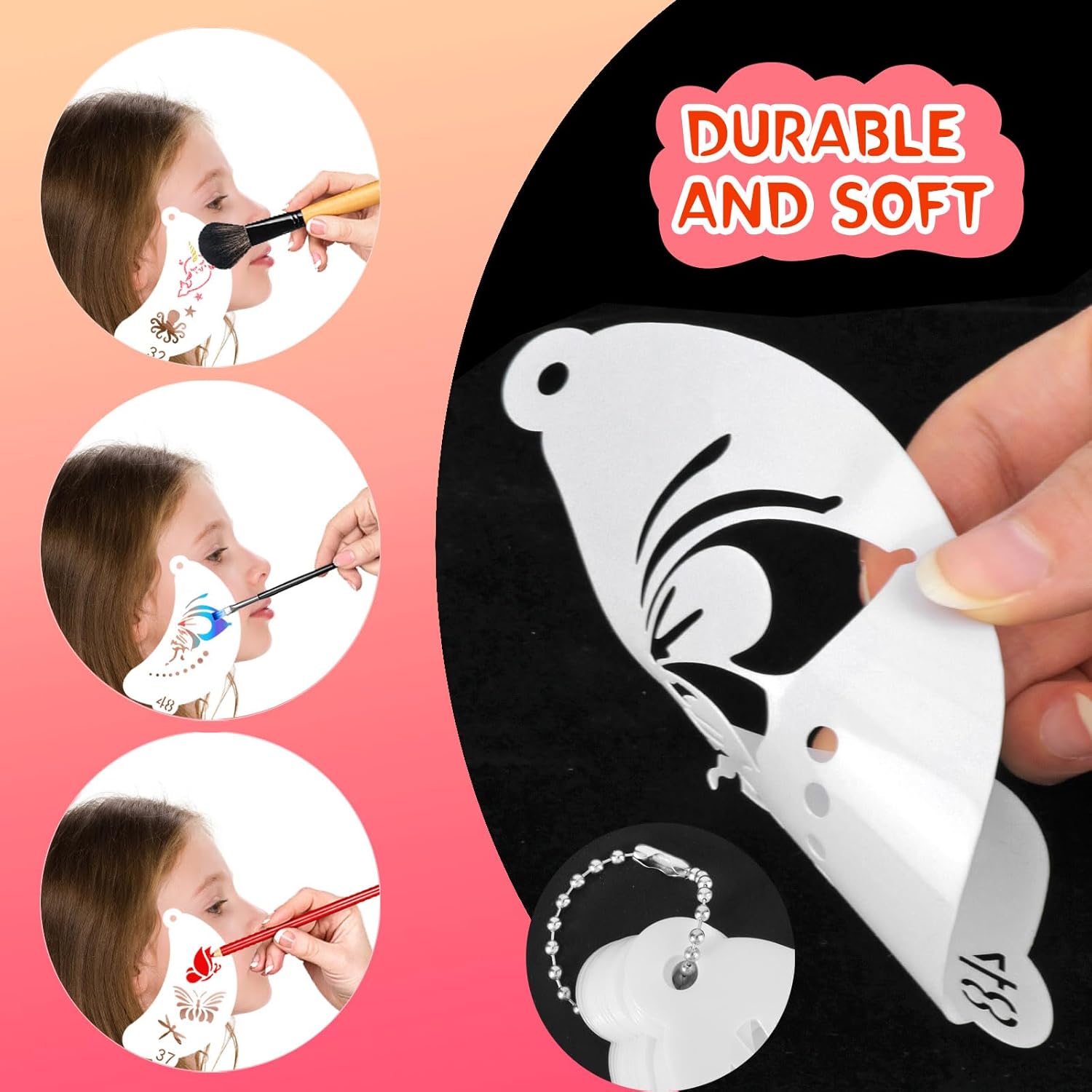 Wat je krijgt: Wordt geleverd met 50st schminkstencils met verschillende patronen. Aantrekkelijk en stijlvol, voldoen aan uw verschillende behoeften, perfect voor Halloween of feestjes.