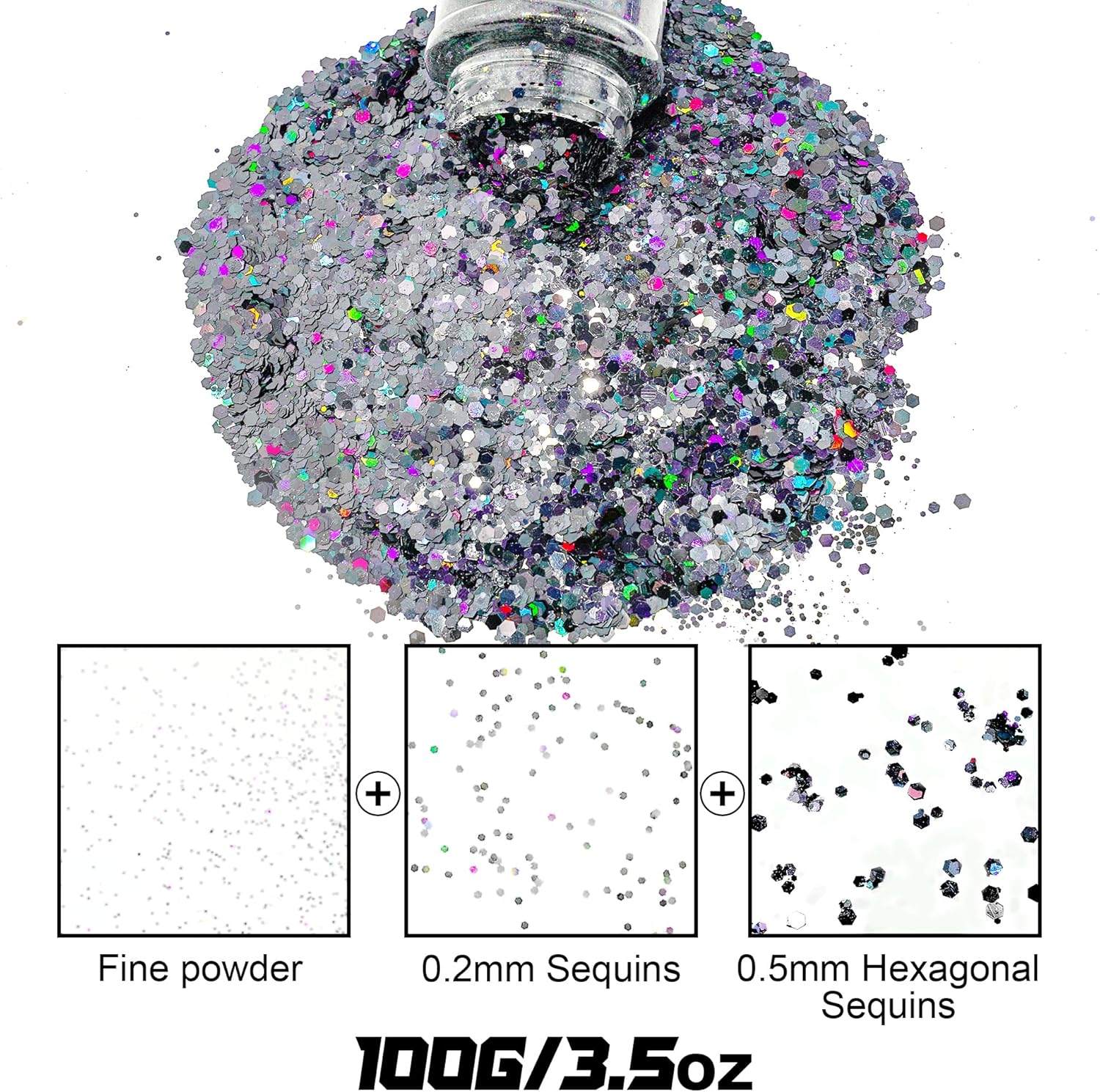 500g Holographic Glitter Silver Glitter for Face Body Glitter Nail Glitter Nail Glitter for Nail Art Makeup Face Body Hair Slime Crafts DIY