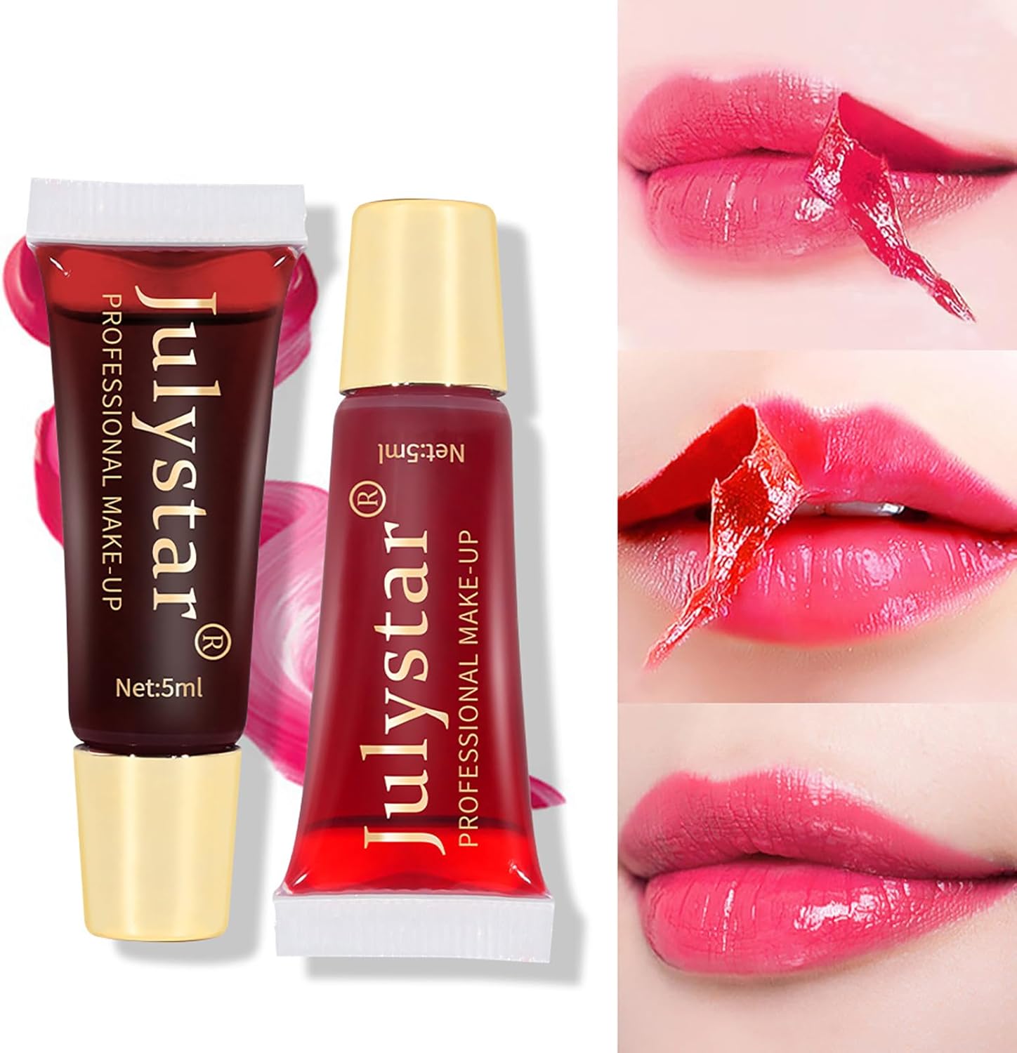 【Gebruik grappig】- 1. Hydrateer en verwijder de dode huid op de lippen voor gebruik. 2. Breng het lipverzorgingsproduct en de dikke afpelbare lipgloss aan en wacht 5-10 minuten en vorm een ​​film (dit proces zal een beetje plakkerig zijn). 3. Veeg het af met een vochtige doek of scheur het voorzichtig af om de film te verwijderen. U hoeft zich geen zorgen te maken dat u aan de gevoelige liphuid trekt, wat uw make-uptoepassing extra leuk maakt.