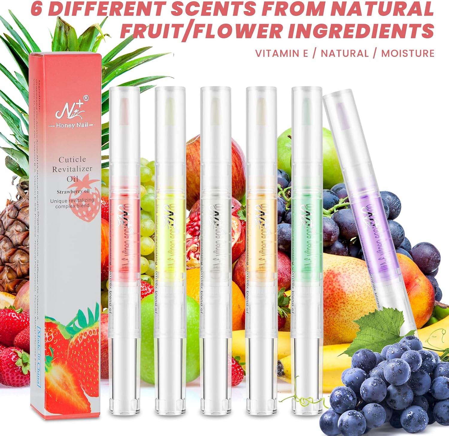 6-delige nageloliepenset, natuurlijke nagelriemoliepennen, nagelriemolie voor nagels, nagelriemrevitalisatieoliepen met zachte borstel voor beschadigde huid