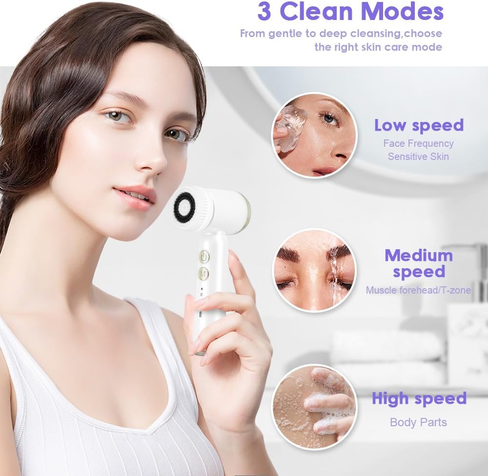 Eenvoudige toegang tot moeilijke gebieden: onze gezichtsreinigingsborstel draait 360 graden, zodat je moeilijk bereikbare plaatsen zoals neus en zijkanten van het gezicht kunt bereiken. Door het verwijderen van vuil en onzuiverheden verbetert het de opname van essentieel materiaal voor een gezondere huid
