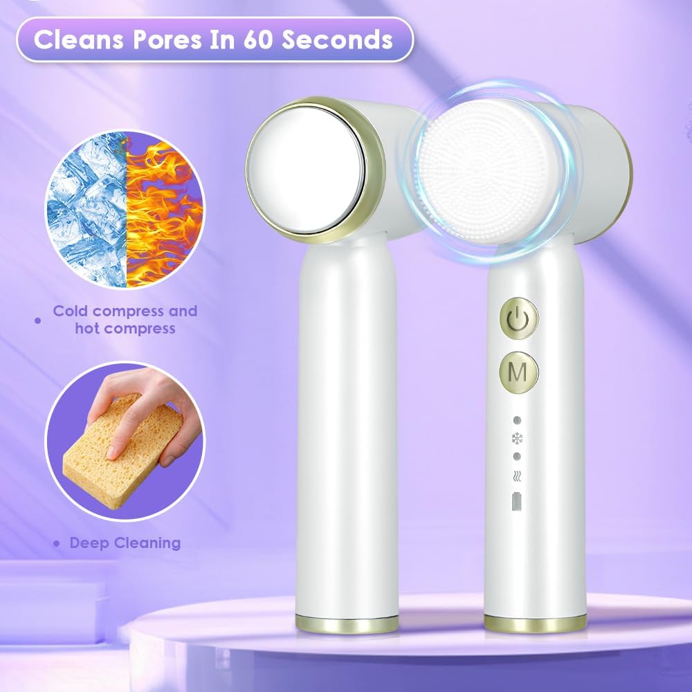 Koelen en opwarmen, diepe reiniging van de huid: ons gezichtsreinigingsapparaat biedt een koelmodus en een verwarmingsmodus die make-upresten, vuil, overtollige talg en dode huidcellen effectief verwijdert. Bovendien bevordert het de doorbloeding en verbetert het uiterlijk van de huid, waardoor deze ongelooflijk zacht en stralend werkt