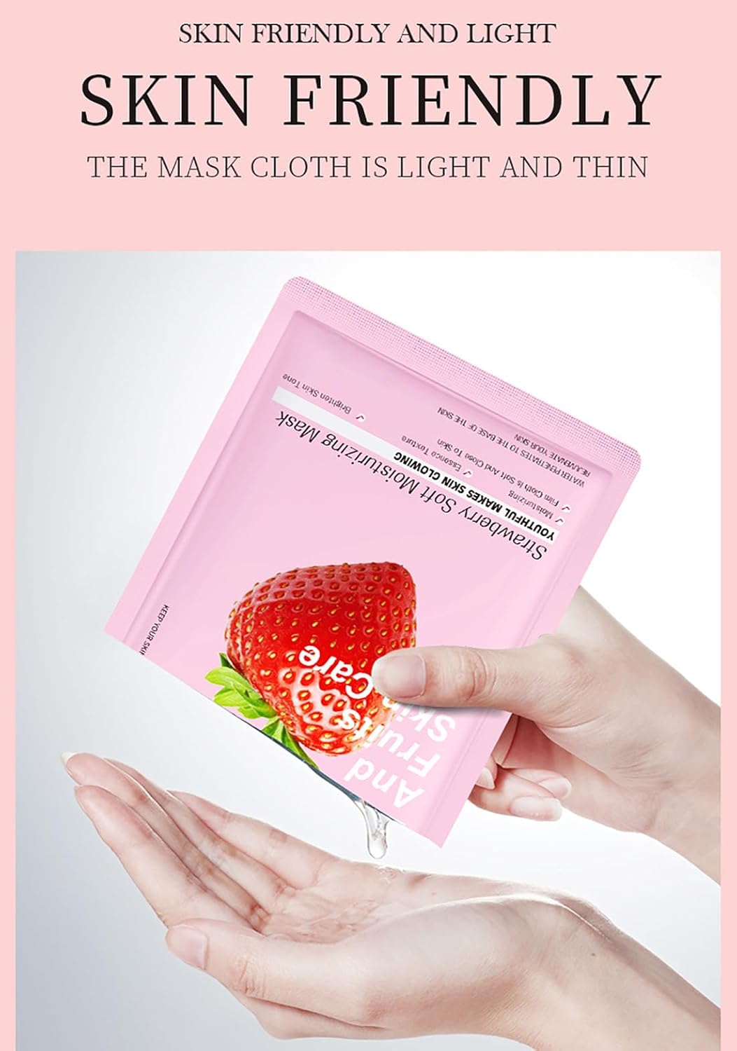 🍓🍓【Licht en dun】Het masker is licht, dun, ademend, zacht en zijdeachtig, zacht en delicaat. Het is soepel, elastisch, zijdeachtig en zacht en past zich perfect aan het gezicht aan, zodat de huid de maskeressentie beter kan opnemen en de huid volledig van vocht kan voorzien.