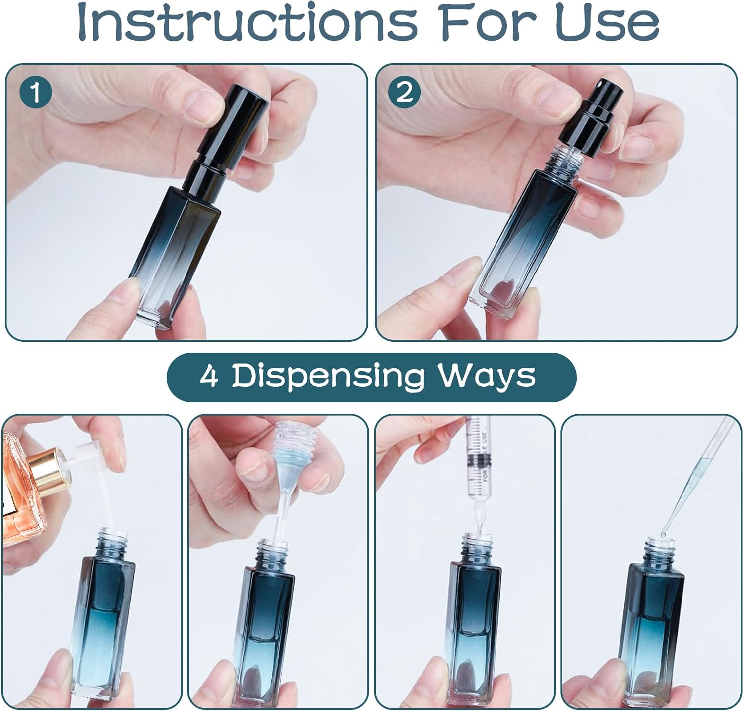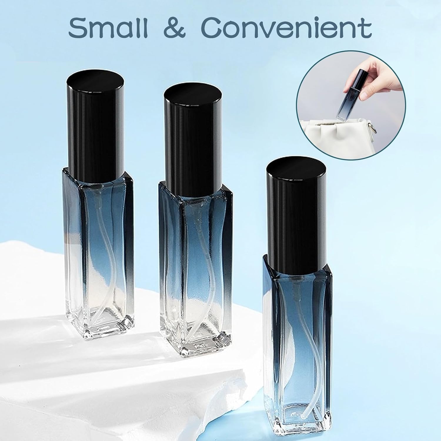 Draagbaar en praktisch: met een inhoud van 10 ml per fles zijn deze parfumverstuivers perfect voor onderweg. Ze zijn klein genoeg om in elke handtas of bagage te passen zonder veel ruimte in te nemen.